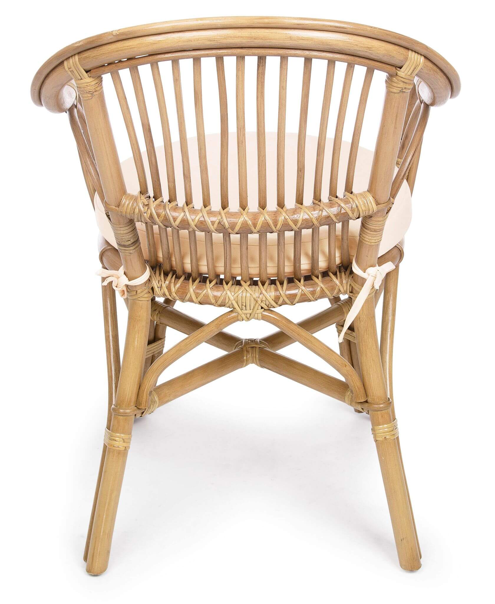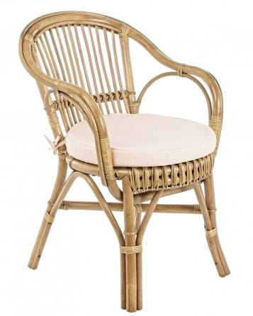 Konstrukcja krzesła została wykonana z rattanu wykończonego farbą melaminową.