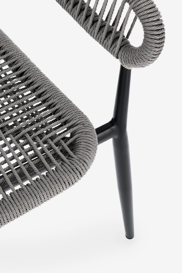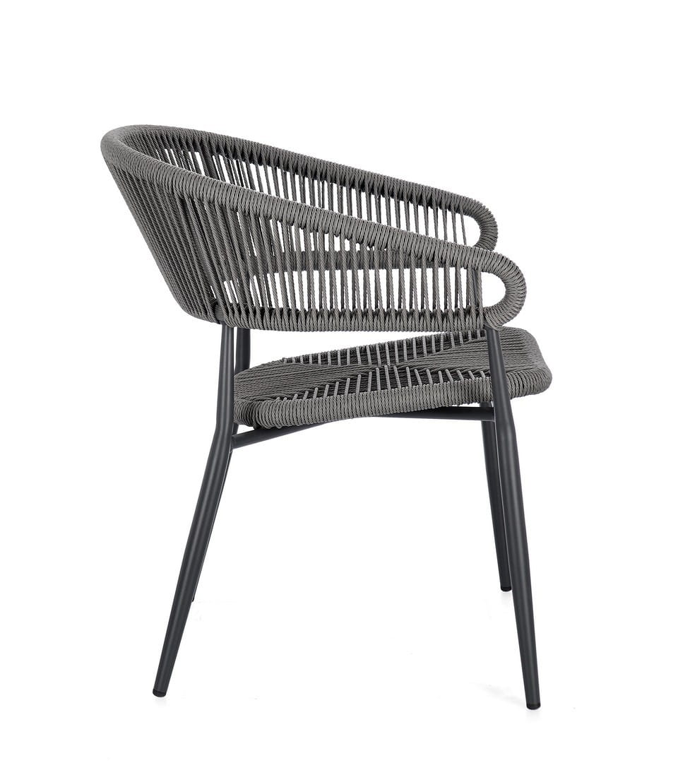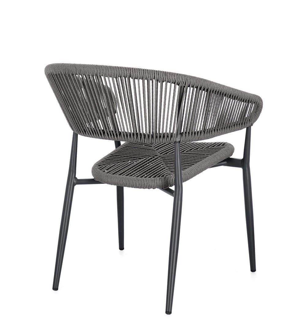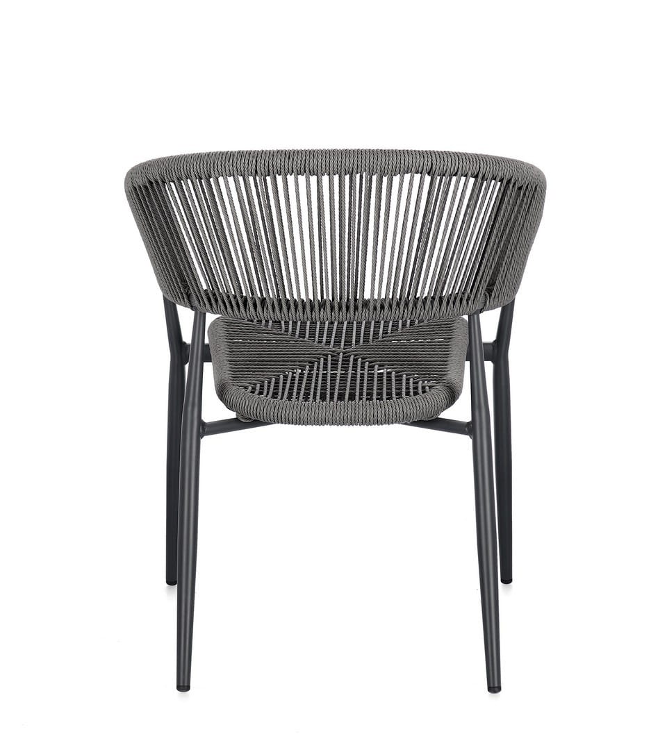 Siedzisko i oparcie wykonano z wytrzymałego, skręcanego włókna syntetycznego, oplatającego aluminiową ramę malowaną proszkowo. Dzięki temu krzesło jest odporne na warunki atmosferyczne i łatwe w pielęgnacji.