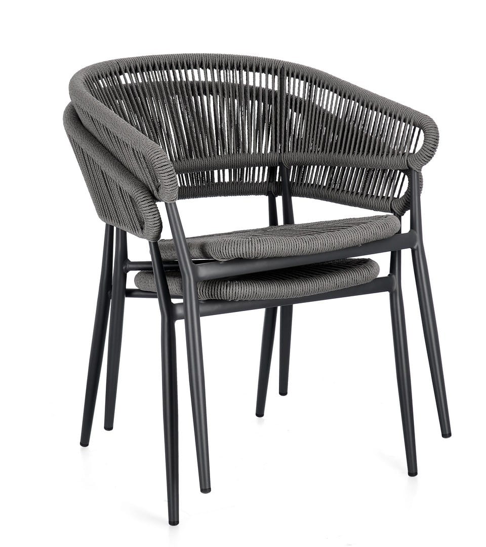 Algaida dostępna jest w trzech wariantach kolorystycznych: antracytowym, naturalnym z ciemnym stelażem oraz naturalnym z białą ramą. Każdy z nich wnosi inny charakter — od nowoczesnego minimalizmu po śródziemnomorską lekkość. Krzesło można sztaplować, co ułatwia przechowywanie. To doskonały wybór do ogrodu, tarasu, balkonu lub przestrzeni komercyjnych.