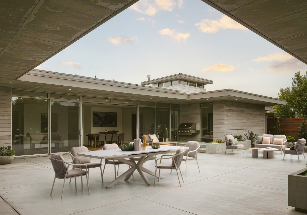 Projekt zachwyca nie tylko wyglądem, ale też przemyślaną funkcjonalnością. Siedzisko i oparcie wyposażono w grube poduszki, które zapewniają wygodę porównywalną z luksusowymi meblami salonowymi. Obszyto je wodoodpornym materiałem syntetycznym, świetnie znoszącym poranną wilgoć i letnie mżawki. Zdejmowane pokrowce ułatwiają zachowanie czystości, a funkcja sztaplowania pozwala na bezproblemowe układanie krzeseł jedno na drugim – to ogromna zaleta przy przechowywaniu mebli w garażu lub schowku poza sezonem.