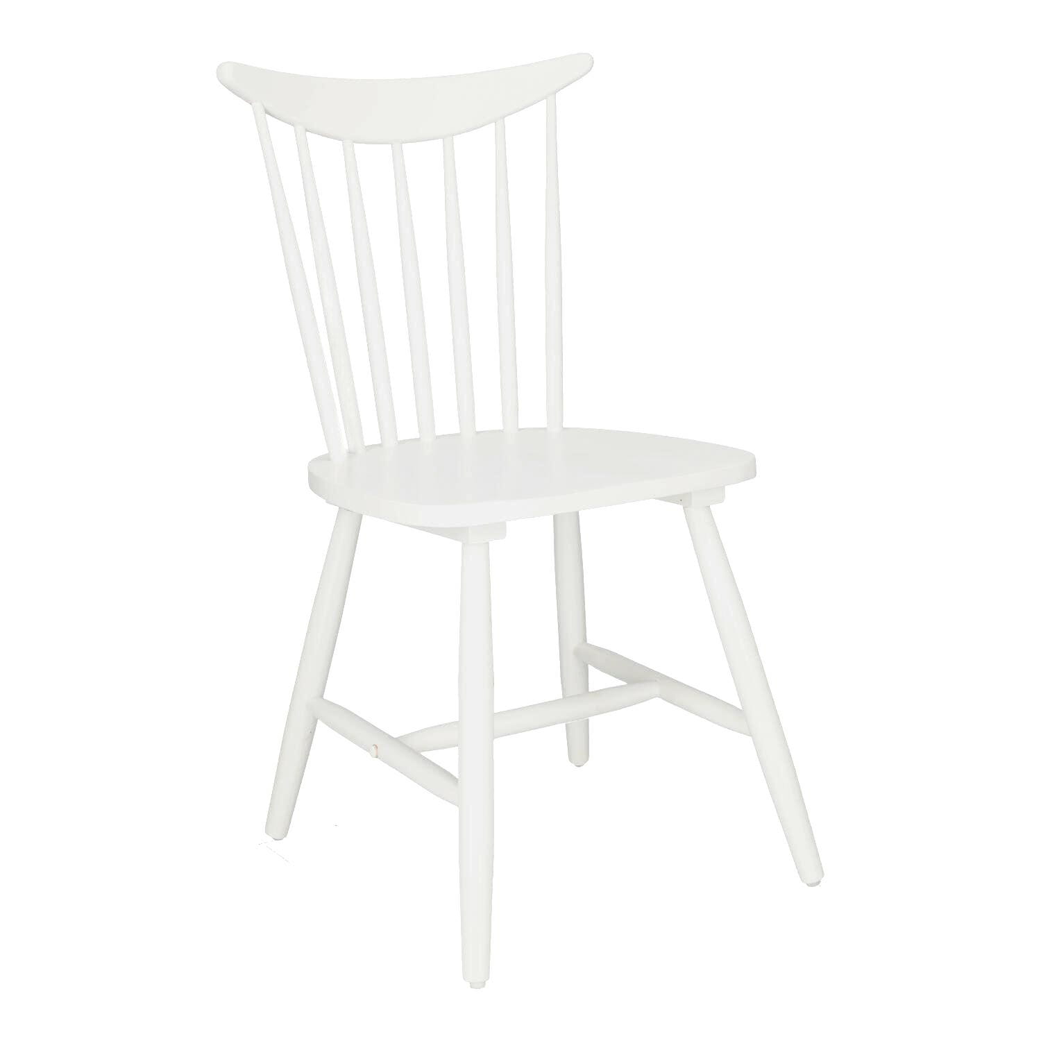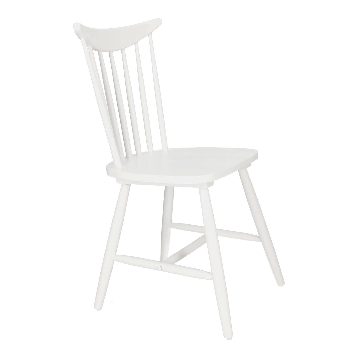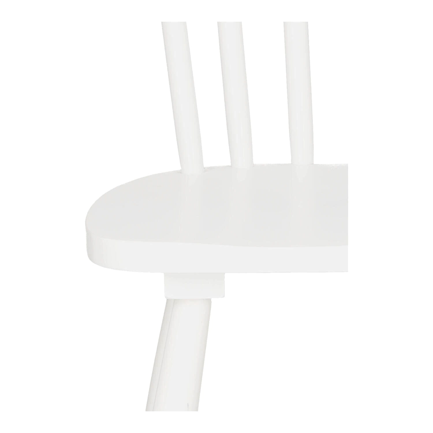 Wykonane w całości z drewna kauczukowego i starannie polakierowane na biało. Całość osadzona została na czterech drewnianych nogach, połączonych ze sobą listewkami wzmacniającymi konstrukcję krzesła. Lekko rozszerzane nogi zapewniają dodatkową stabilizację. Podłużne elementy podparcia oraz szerokie siedzisko zapewnią komfort siedzenia a ponadczasowy design lat 60 urozmaici wystrój każdego wnętrza.