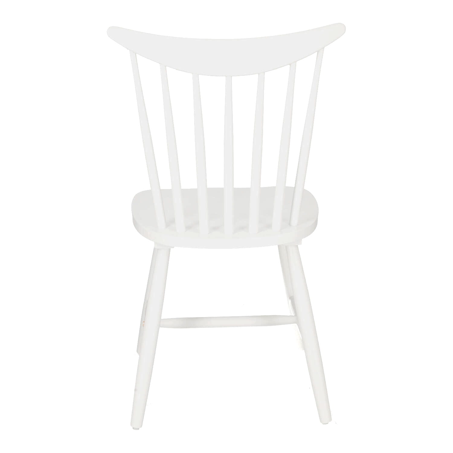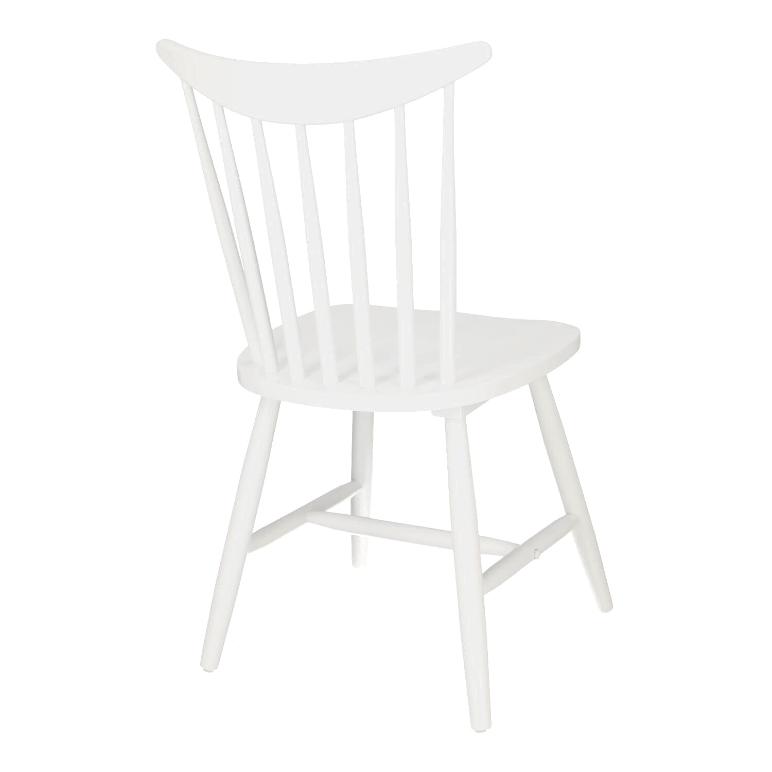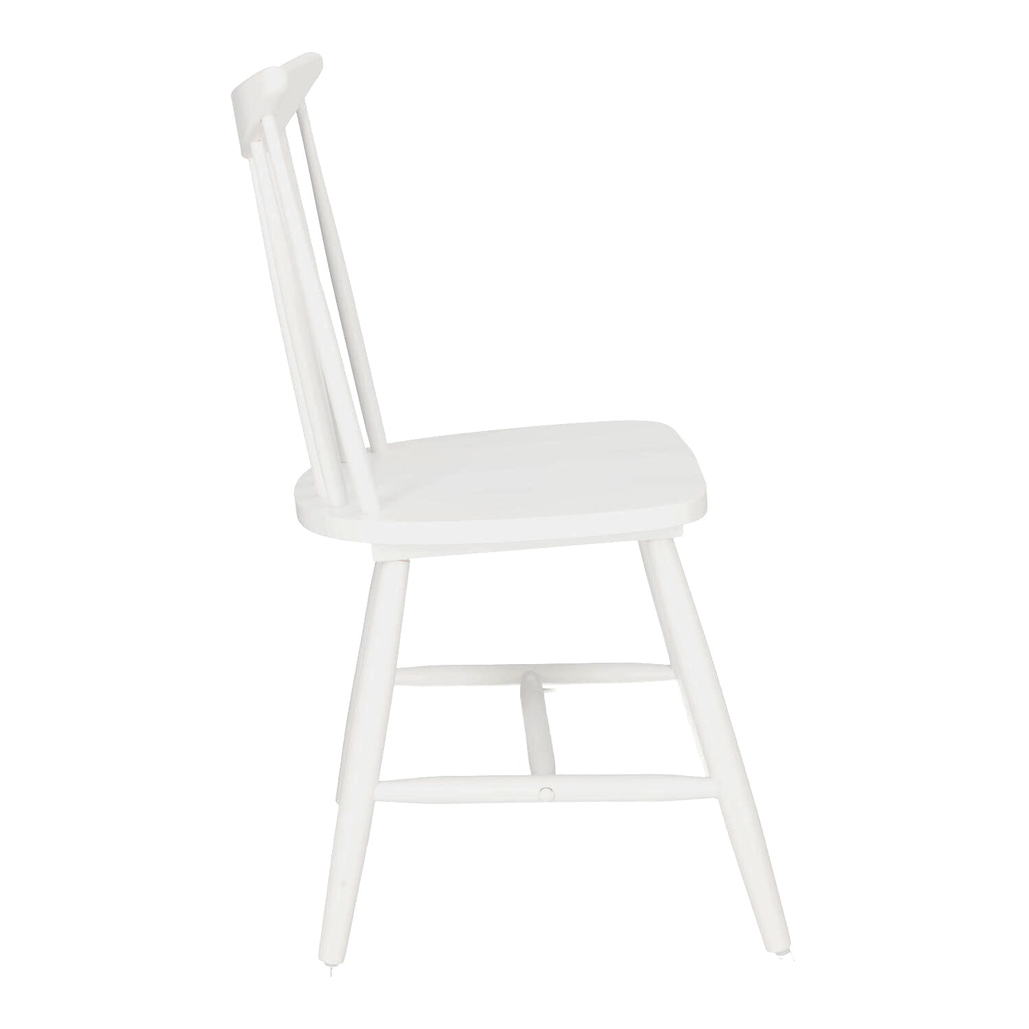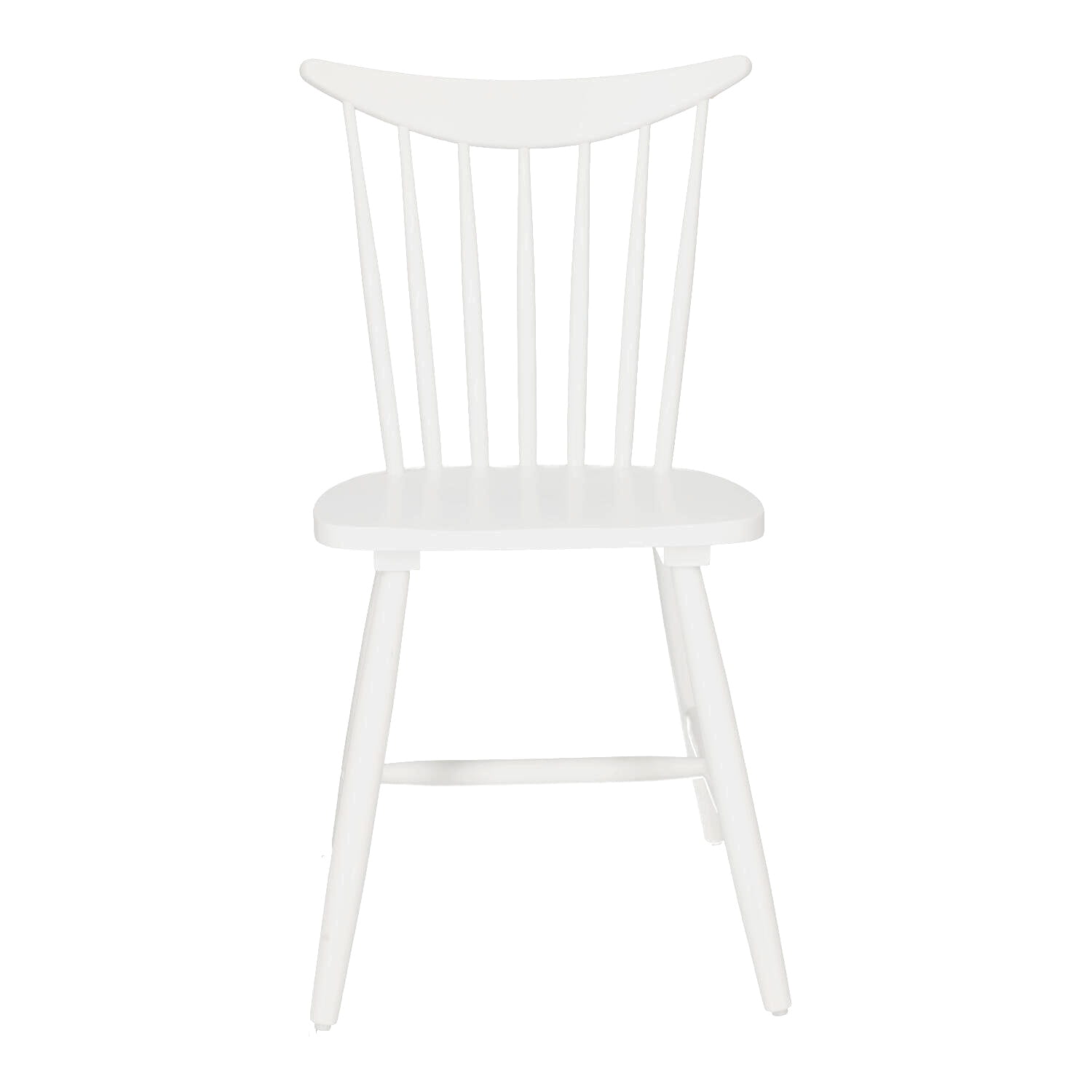 Wykonane w całości z drewna kauczukowego i starannie polakierowane na biało. Całość osadzona została na czterech drewnianych nogach, połączonych ze sobą listewkami wzmacniającymi konstrukcję krzesła. Lekko rozszerzane nogi zapewniają dodatkową stabilizację. Podłużne elementy podparcia oraz szerokie siedzisko zapewnią komfort siedzenia a ponadczasowy design lat 60 urozmaici wystrój każdego wnętrza.