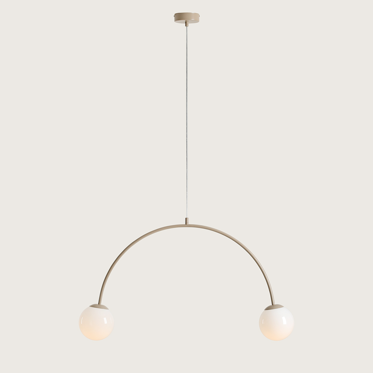 Lampa wisząca UNA 2 to wyraz minimalistycznej elegancji inspirowanej miękką geometrią i pastelową kolorystyką. Jej charakterystyczna, łukowata forma zakończona dwoma kulistymi kloszami z opalowego szkła tworzy harmonijną kompozycję, która subtelnie dopełni zarówno nowoczesne, jak i skandynawskie wnętrza. Dzięki delikatnemu rozproszeniu światła UNA 2 nadaje pomieszczeniu przytulności i miękkości - idealnie sprawdzi się nad stołem, w salonie czy sypialni.