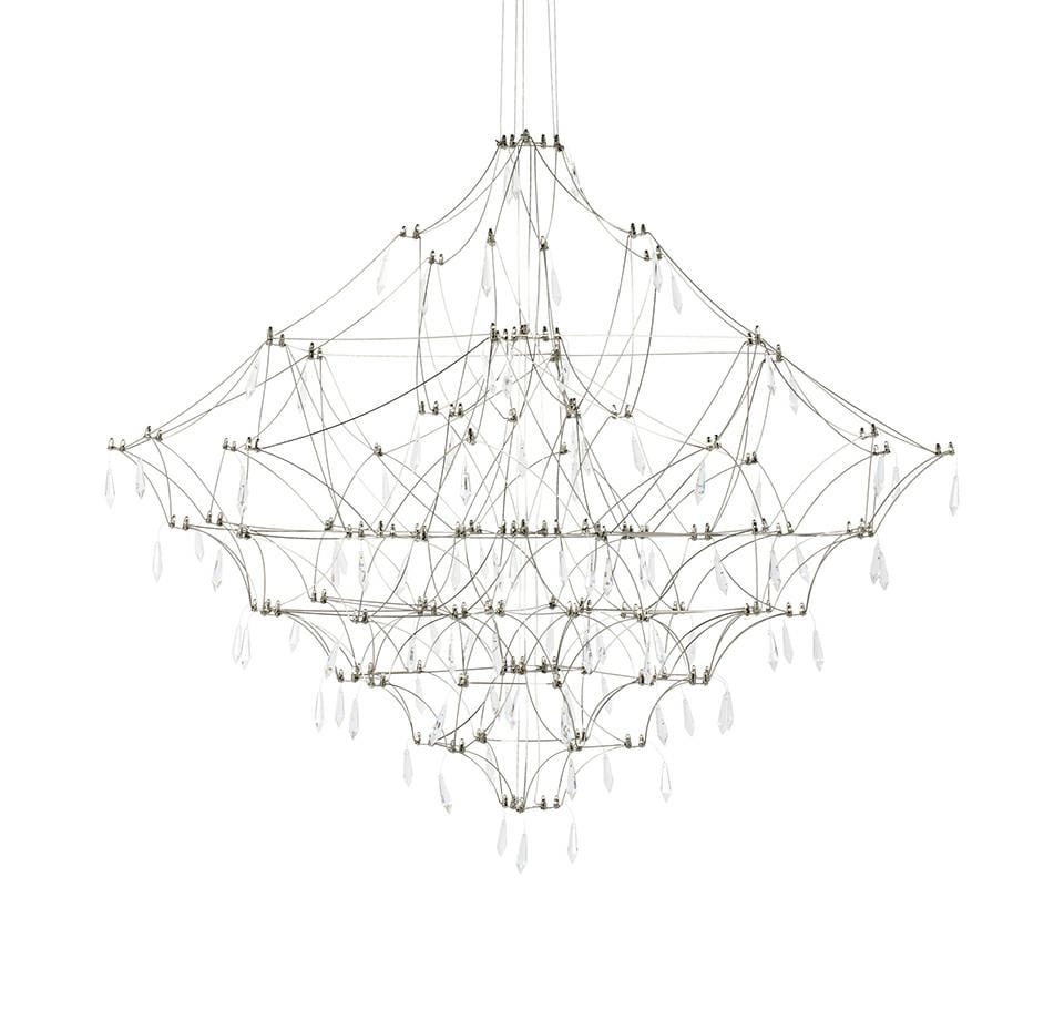 Constelation to przepiękna lampa sufitowa. Cała konstrukcja lampy wykonana została ze stali szczotkowanej. Metalowa pajęczyna, połączona z ledowymi źródłami światła tworzy wyjątkowo elegancką konstrukcję. Całość została wykończona dekoracyjnymi kryształkami, od których odbija się światło, dzięki czemu rzucają one subtelne cienie.