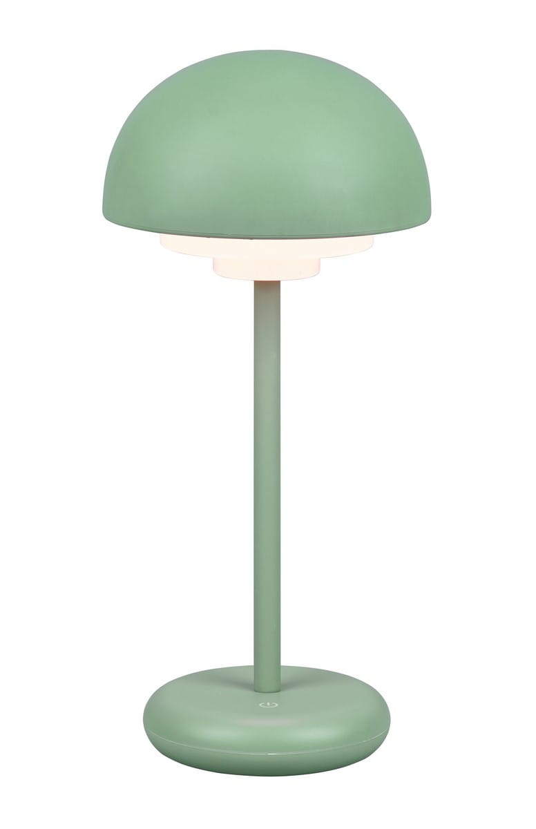 Konstrukcja lampy wykonana została z wysokiej jakości tworzywa sztucznego w kolorze miętowym o matowym wykończeniu. Półokrągły klosz skrywa źródło światła LED, które emituje ciepłą białą barwę. Dotykowy przycisk wbudowany na podstawie umożliwia 4- stopniową regulację natężenia światła, dzięki czemu możemy w łatwy sposób dostosować jasność oświetlenia według własnych potrzeb. U boku podstawy został zamontowany port USB, który umożliwia ładowanie lampy. Czas ładowania wynosi około 3,5 h. Jedno naładowanie starcza na około 7h.