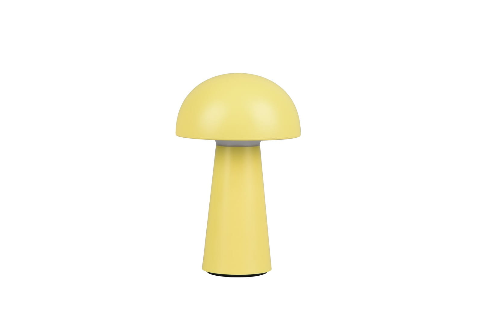 Konstrukcja lampy wykonana została z wysokiej jakości tworzywa sztucznego w kolorze żółtym o matowym wykończeniu. Półokrągły klosz skrywa źródło światła LED, które emituje ciepłą białą barwę. Dotykowy przycisk wbudowany na grzbiecie klosza umożliwia 4- stopniową regulację natężenia światła, dzięki czemu możemy w łatwy sposób dostosować jasność oświetlenia według własnych potrzeb. Pod spodem stożkowej podstawy zamontowany został port USB, który umożliwia ładowanie lampy. Czas ładowania wynosi około 3,5 h. Jedno naładowanie starcza na około 7h.