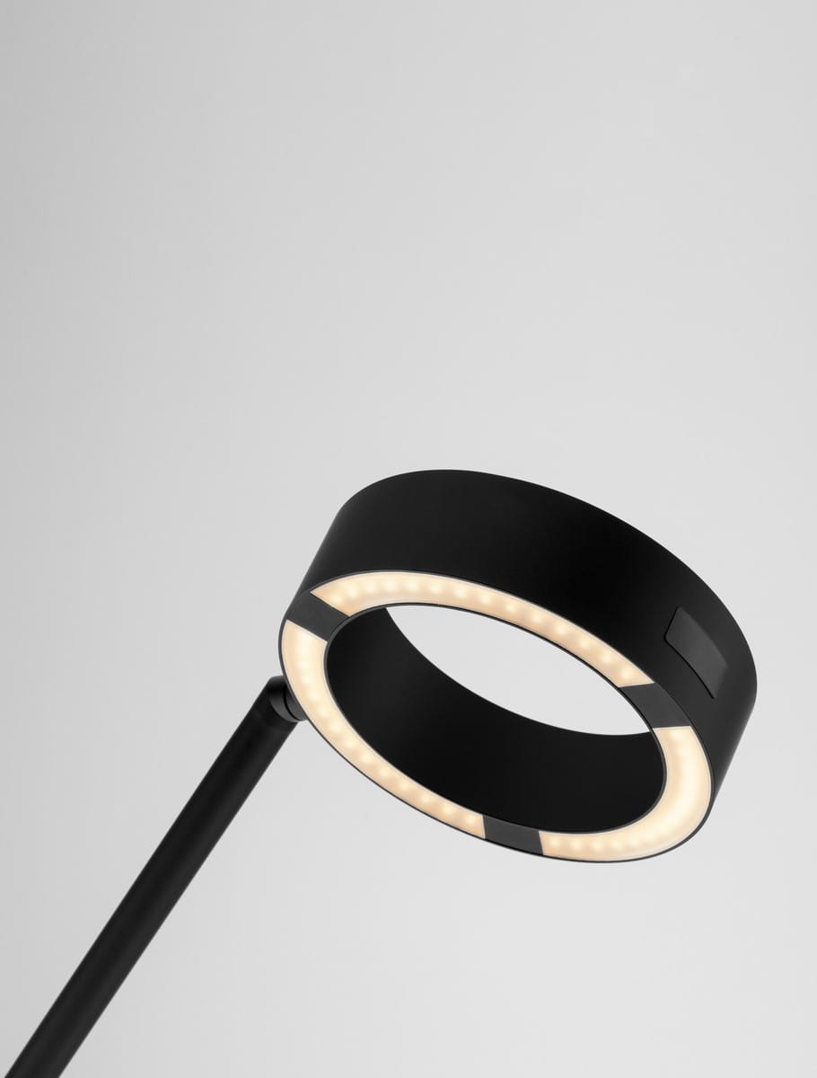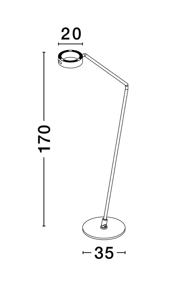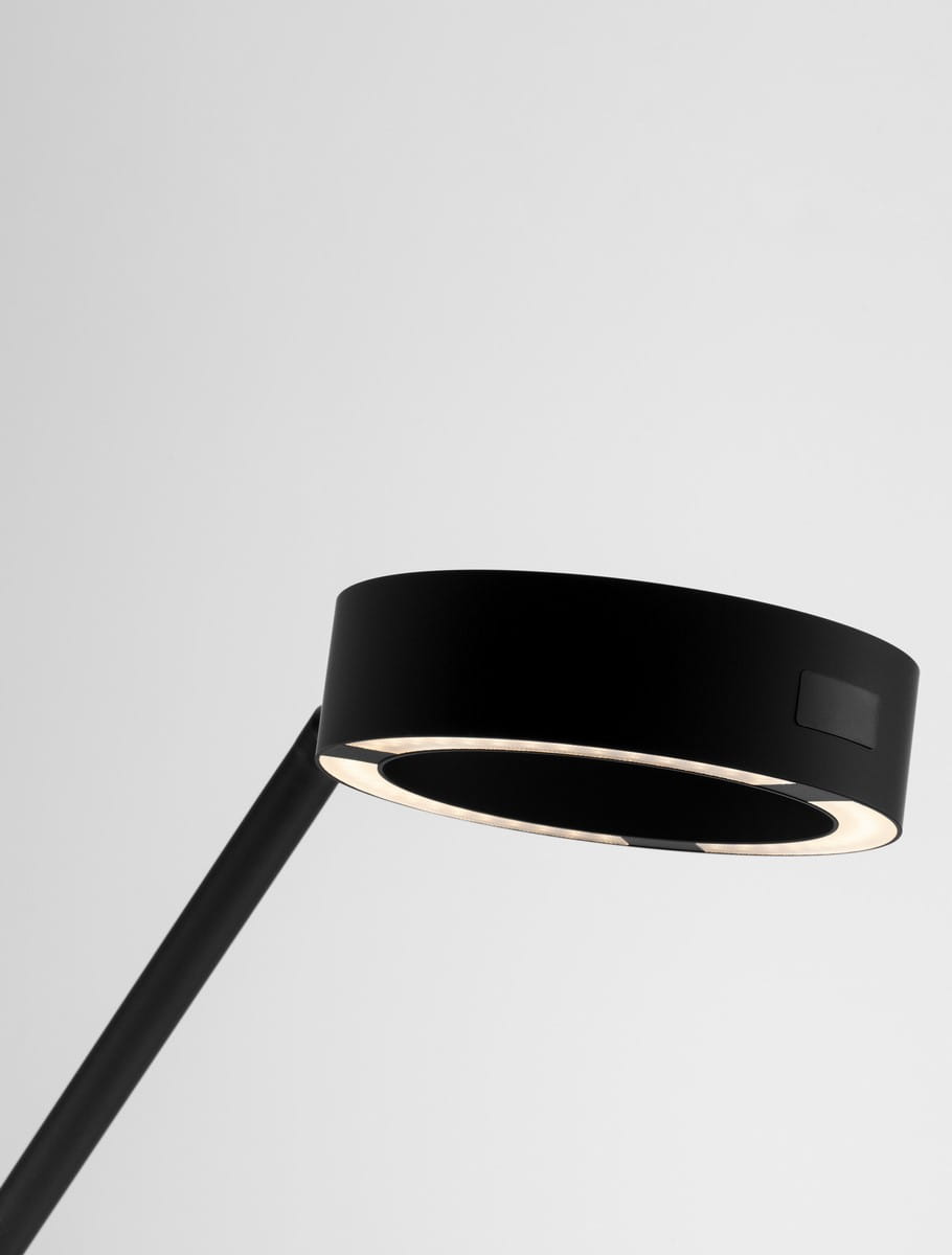 Klosz lampy w formie dysku subtelnie zintegrowany z regulowanym ramieniem oferuje precyzyjne oświetlenie przestrzeni, jednocześnie podkreślając techniczną harmonię formy. Funkcja dotykowego ściemniania pozwala na łatwe dostosowanie intensywności światła, co czyni ją niezwykle praktycznym wyborem zarówno do pracy, jak i relaksu.