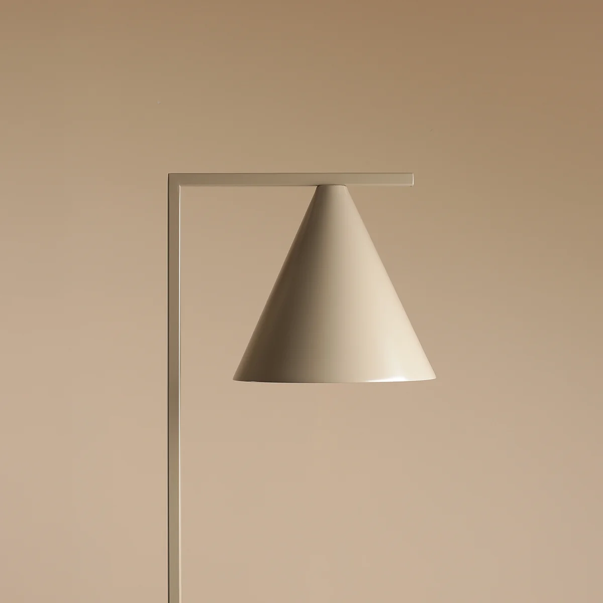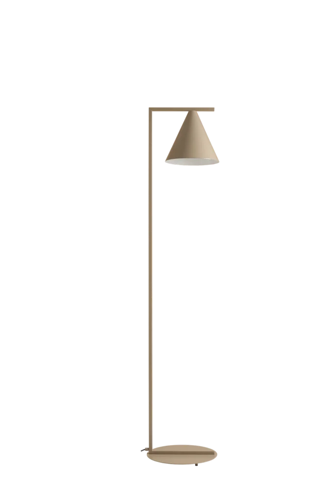 Nowoczesna, niebieska lampa podłogowa z geometrycznym kloszem w kształcie stożka. Modnie oświetli domowy salon, kąt kawiarni czy stylowe biuro.