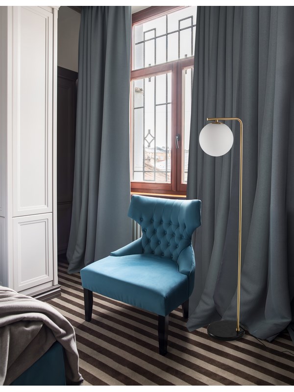 Lampa podłogowa Rioja to połączenie ponadczasowej elegancji i nowoczesnego designu. Smukła konstrukcja wykonana z metalu w kolorze satynowego złota osadzona została na stabilnej marmurowej podstawie, która nadaje całości wyjątkowej klasy. Kulisty klosz z białego szkła subtelnie rozprasza światło, tworząc przytulną atmosferę i harmonijnie dopełniając aranżację wnętrza.