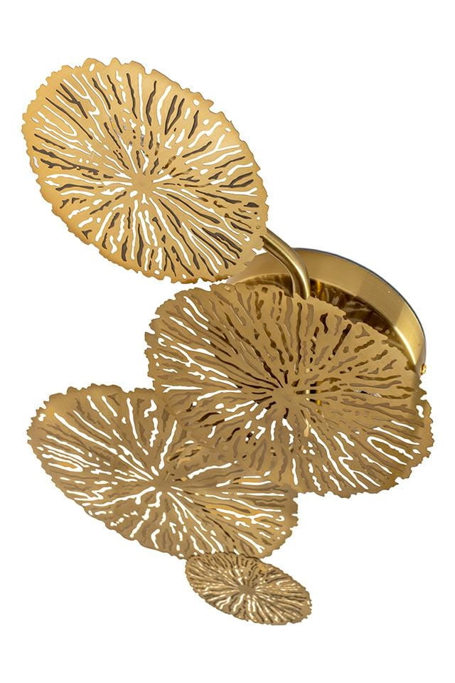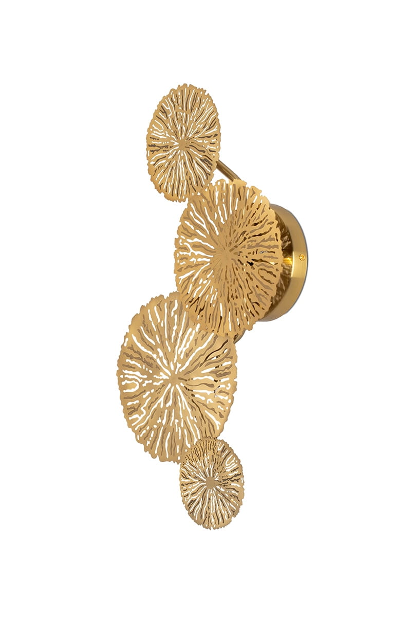 Lampa wykonana została w gustownym złotym kolorze, który w połączeniu z niebanalnym kształtem stworzy na ścianie istne dzieło sztuki oświetleniowej.