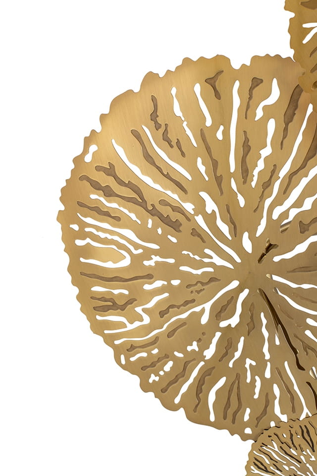 Lampę tworzą cztery stalowe koła o różnych średnicach, których estetyka czerpie inspirację z motywów roślinnych i swym wyglądem przypomina okrągłe, rozłożyste liście. Na kołach znajdują się ozdobne, faliste wycięcia, których miękkie kształty nawiązują do natury. Światło, które po zapaleniu przez nie przenika tworzy przytulny klimat oraz ciepła atmosferę.