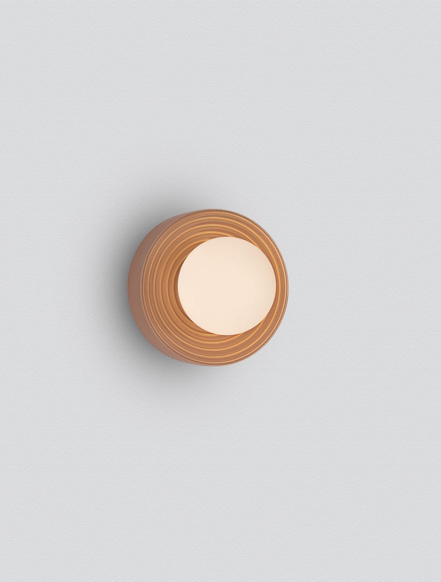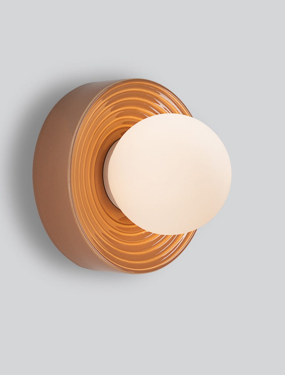 Kinkiet ścienny Malvano to idealne połączenie klasyki z nutą współczesnego designu. Zaprojektowany z myślą o eleganckich i stylowych wnętrzach, przyciąga wzrok za sprawą swojej prostej, a zarazem wyrazistej formy. Okrągła oprawa z delikatnie żłobionym rantem wykonana została z wysokiej jakości porcelany, dostępnej w czterech starannie dobranych kolorach: subtelnym beżu, ciepłym karmelu, głębokiej butelkowej zieleni oraz stonowanym błękicie. Centralną część lampy wypełnia matowy klosz ze szkła, który miękko rozprasza światło, nadając przestrzeni przytulności.