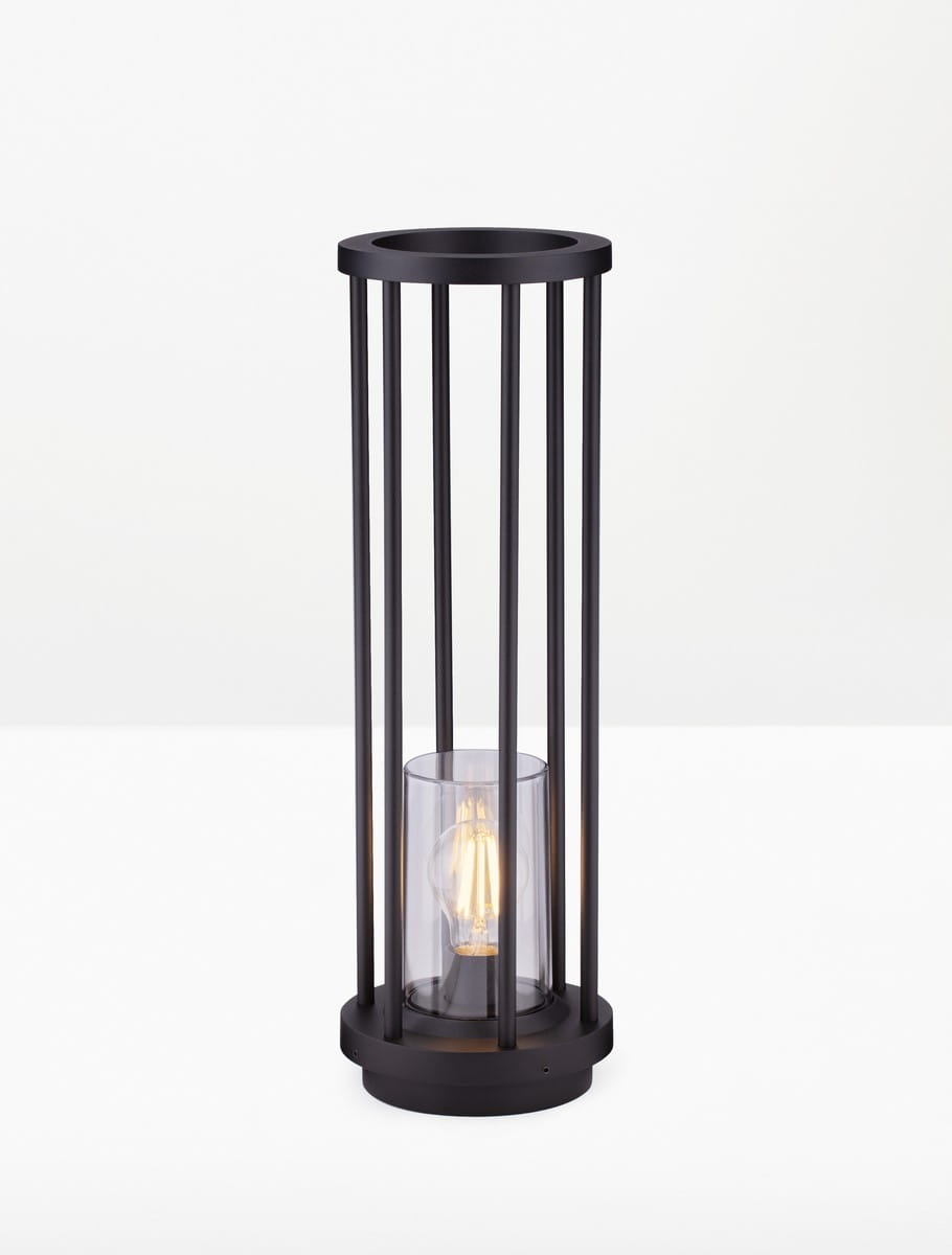 Lampa Ojeda to elegancka i nowoczesna propozycja oświetlenia zewnętrznego, która doskonale sprawdzi się w każdej aranżacji. Wykonana z wytrzymałego aluminium, łączy nowoczesny design z trwałością i odpornością na warunki atmosferyczne. Jej industrialny, otwarty kształt składa się z pionowych metalowych prętów tworzących konstrukcję lampionu. Wewnątrz lampy znajduje się źródło światła otoczone transparentną osłonką.