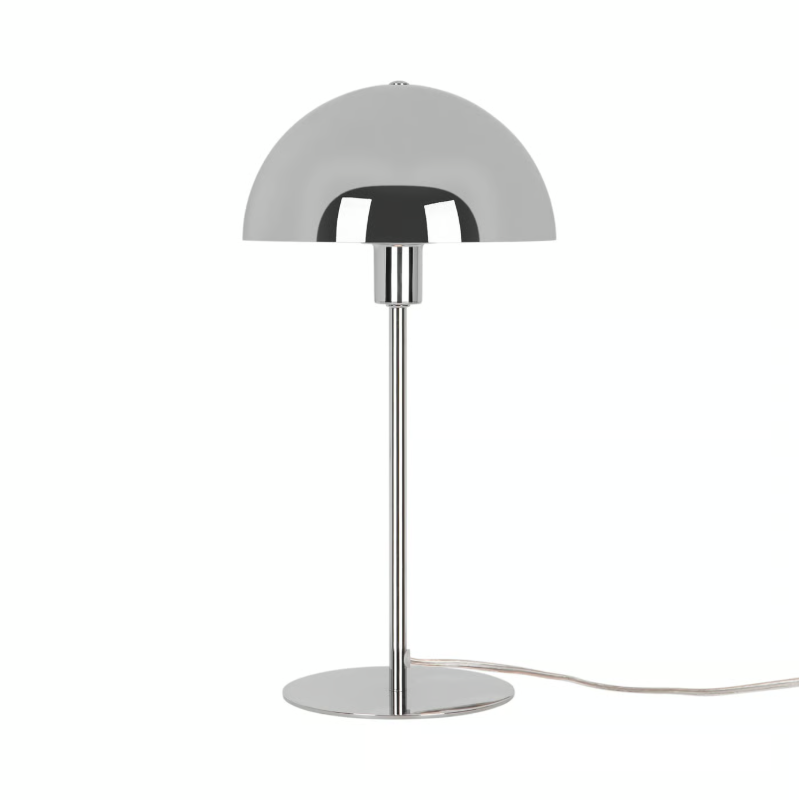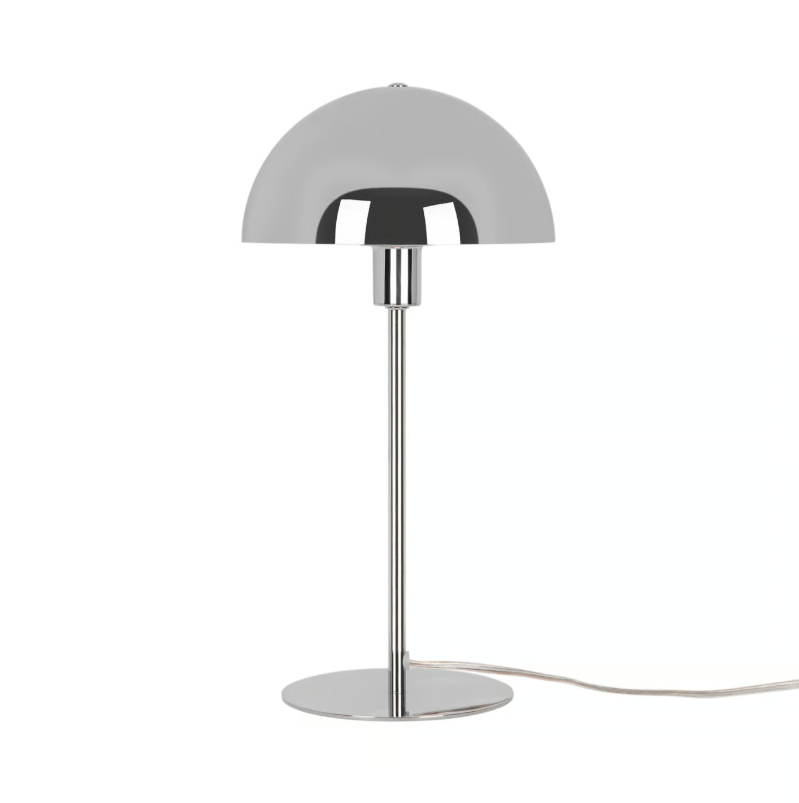 Lampa stołowa Ellen 20 od znanej skandynawskiej marki Nordlux to idealny dowód na to, że minimalistyczny design nigdy nie wychodzi z mody. Ten ponadczasowy model przyciąga uwagę swoim wyrazistym, chromowanym wykończeniem na wysoki połysk. Lustrzana powierzchnia ramy i klosza przepięknie odbija otoczenie, stając się biżuteryjnym akcentem we wnętrzu.