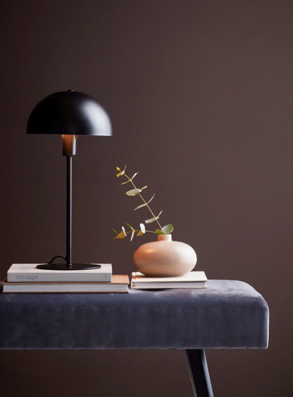 Wykończenie w głębokiej, matowej czerni nadaje oprawie mocnego, wyrazistego charakteru. Lampa doskonale sprawdzi się jako nastrojowe oświetlenie nocne w sypialni, stylowa lampka na komodzie w salonie czy funkcjonalny dodatek na biurko w domowym gabinecie. Najwyższą dbałość o detale potwierdza elegancki, czarny przewód zasilający ukryty w tekstylnym oplocie, na którym umieszczono wygodny w użyciu włącznik.