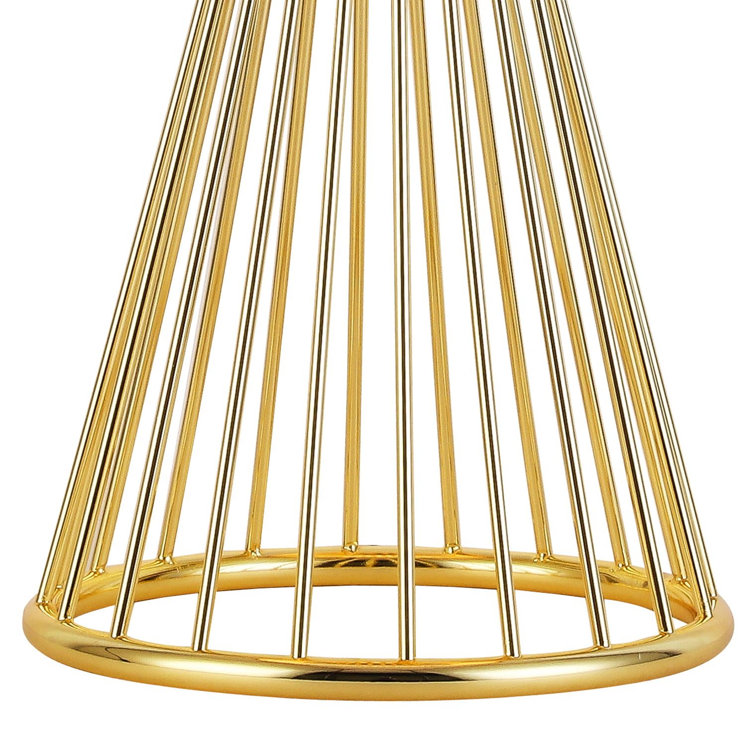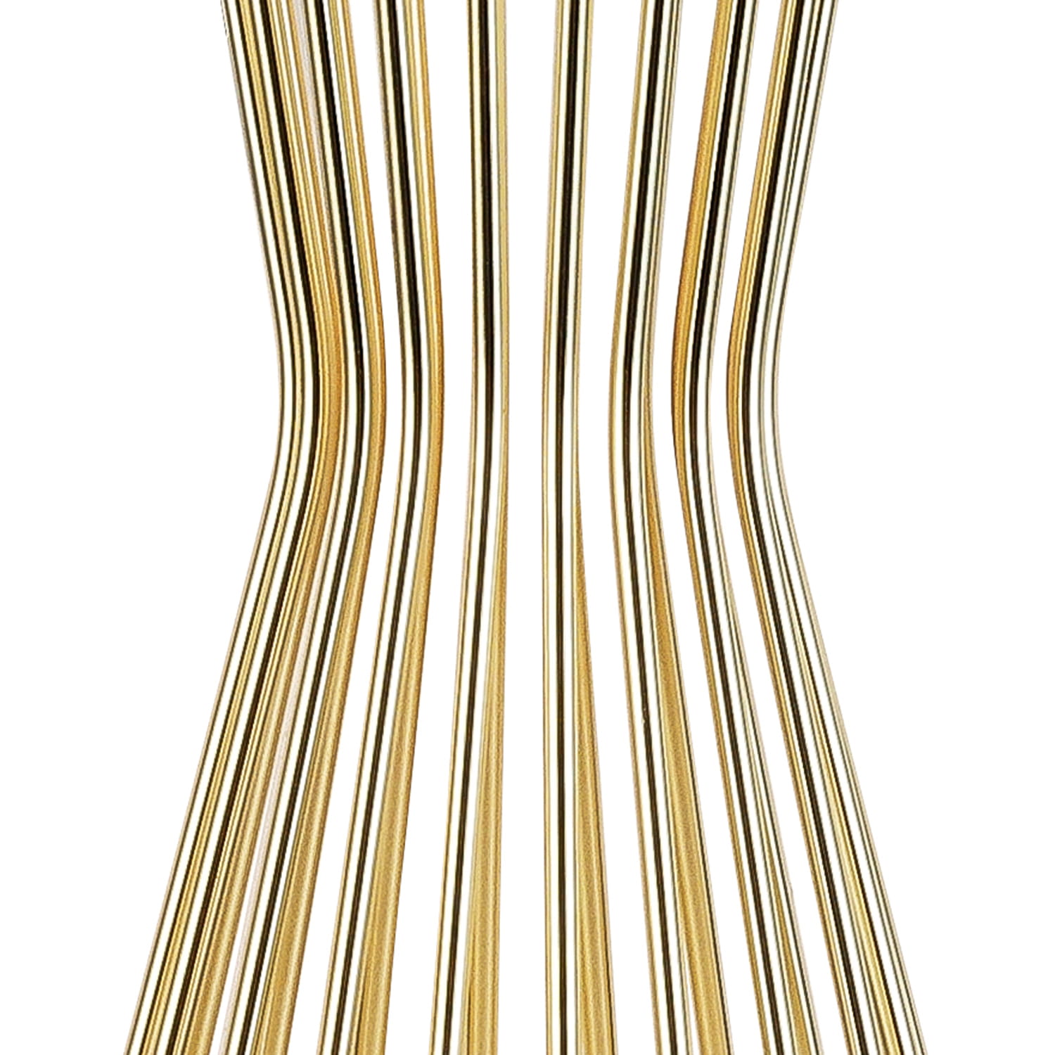 Lampa filo to minimalizm ujęty w metalowej podstawie z oryginalnym „wcięciem”, na której osadzony został klasyczny, cylindryczny klosz. Abażur wykonano z płótna satynowego, usztywnionego laminatem i wykończonego lamówką. Metalowy stelaż wykonany został z żelaza w złotym kolorze, o błyszczącym wykończeniu.