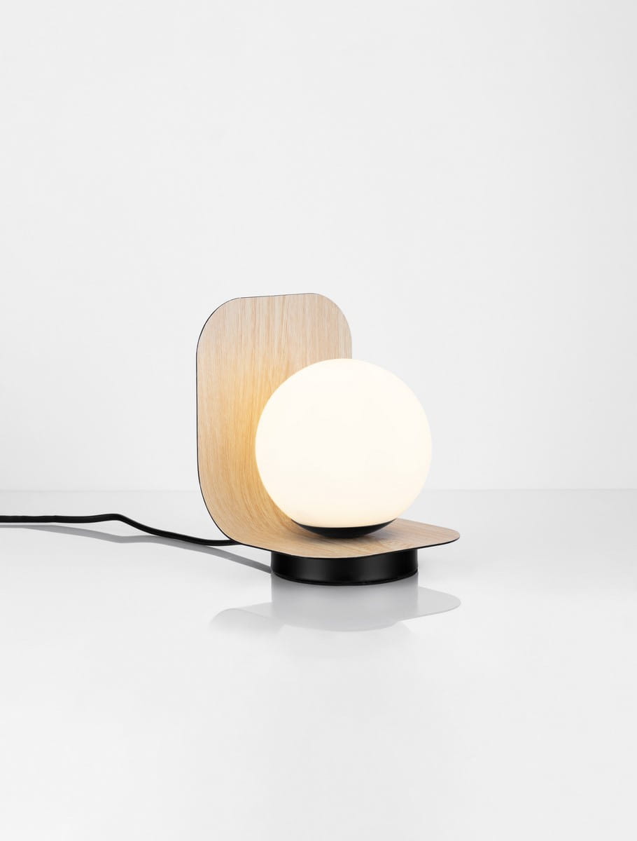 Szklany klosz, w kształcie kuli, subtelnie rozprasza światło, tworząc przytulną atmosferę. Stabilna metalowa podstawa zapewnia trwałość i nowoczesny akcent, który kontrastuje z organicznym wyglądem drewna. Lampa Heras to doskonały wybór dla osób ceniących prostotę, funkcjonalność i ponadczasowy design.