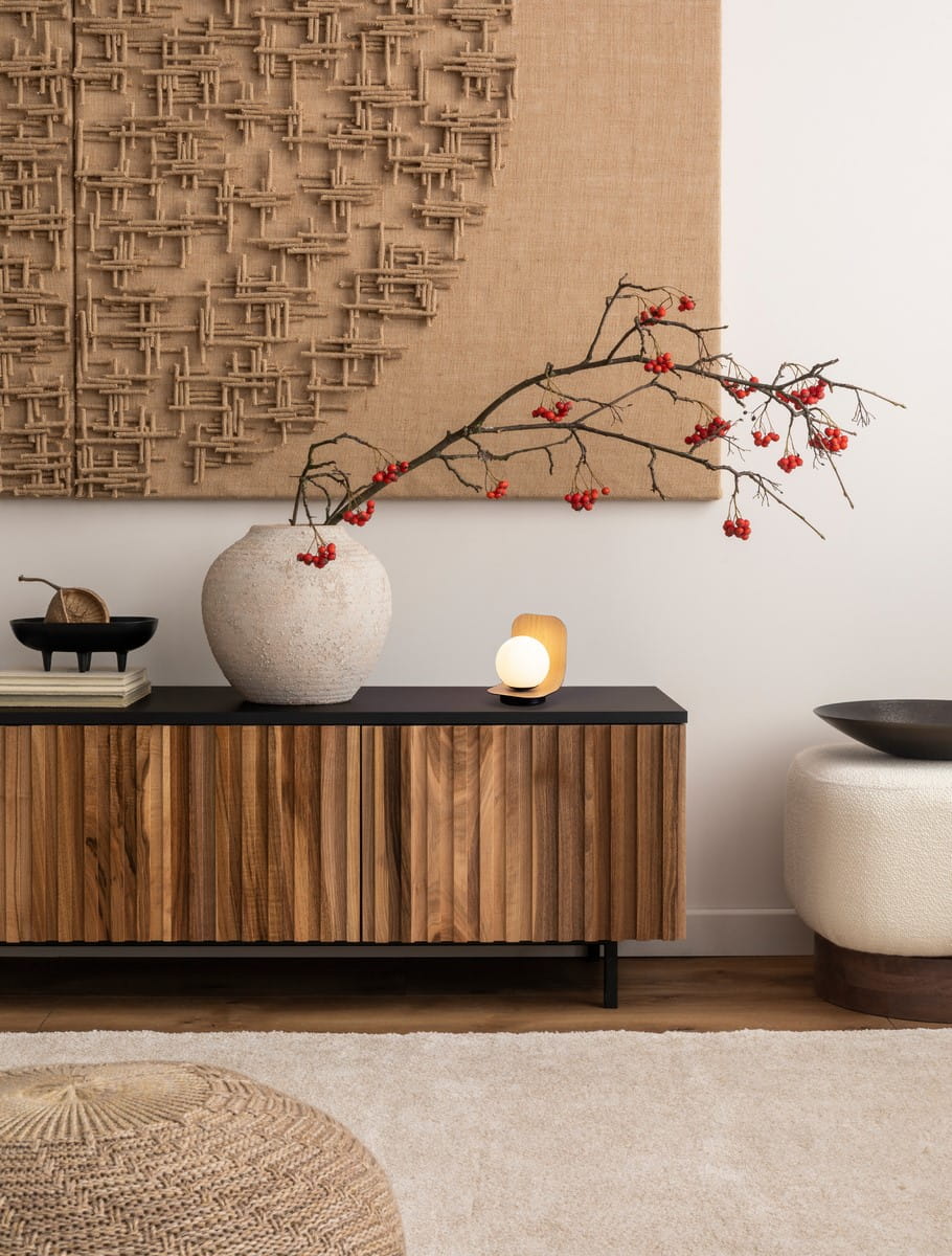 Lampa stołowa Heras to harmonijne połączenie naturalnych i nowoczesnych materiałów. Korpus lampy został wykonany z drewna, co nadaje jej ciepłego i naturalnego charakteru, idealnie wkomponowując się w przestrzenie o minimalistycznym i skandynawskim wystroju.