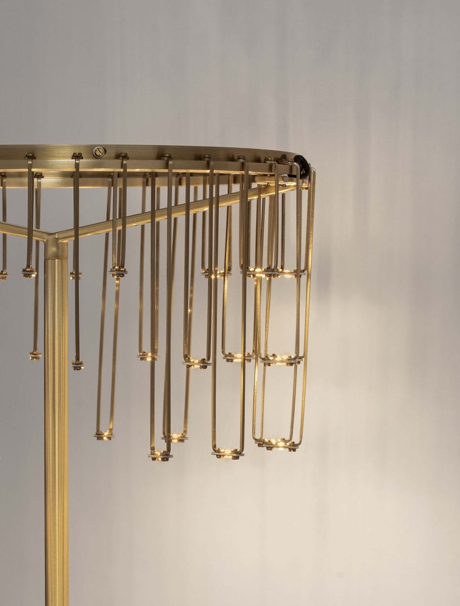 Eleganckie lampy Huaraz w wersji podłogowej i stołowej to połączenie wyrafinowanego designu z funkcjonalnością. Wykonane z najwyższej jakości metalu, dostępne są w dwóch kolorach: klasycznej czerni oraz luksusowym złocie. Te niezwykłe lampy charakteryzują się pierścieniowym abażurem zdobionym delikatnymi, geometrycznymi elementami, które pięknie rozpraszają światło, tworząc subtelne refleksy w otoczeniu.