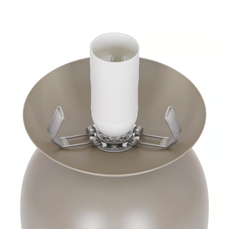Projekt opiera się na intrygującym zestawieniu kształtów i faktur – solidna, geometryczna podstawa z matowego metalu w naturalnym, beżowym odcieniu (PANTONE 17-1112 TPG) tworzy piękny kontrast z subtelną, idealnie okrągłą kopułą. Klosz z mlecznobiałego szkła nie tylko dodaje całości wizualnej objętości, ale przede wszystkim gwarantuje miękkie, przyjemnie rozproszone światło pozbawione ostrego efektu oślepiania.