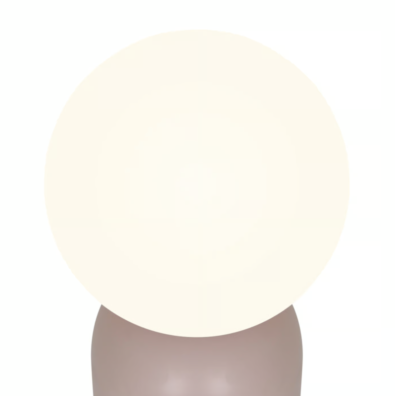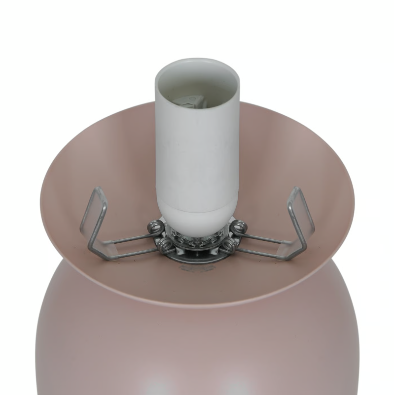 Projekt opiera się na intrygującym zestawieniu kształtów i faktur – solidna, geometryczna podstawa z matowego metalu w zachwycającym odcieniu brudnego różu (PANTONE 14-1803) tworzy piękny kontrast z delikatną, idealnie okrągłą kopułą. Klosz z mlecznobiałego szkła nie tylko dodaje całości wizualnej lekkości, ale przede wszystkim gwarantuje miękkie, przyjemnie rozproszone światło pozbawione ostrego efektu oślepiania.