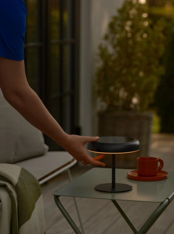Charakterystyczny, minimalistyczny klosz zapewnia przyjemne, miękkie światło skierowane w dół, które buduje relaksującą atmosferę, nie oślepiając przy tym użytkowników. Lampa wyposażona jest w energooszczędny moduł LED emitujący ciepłą barwę światła (3000K) oraz innowacyjny 3-stopniowy system ściemniania Moodmaker™. Pozwala on na łatwe dopasowanie jasności do sytuacji – wydajny akumulator gwarantuje nieprzerwaną pracę od 6 do nawet 26 godzin (w zależności od wybranego poziomu jasności).