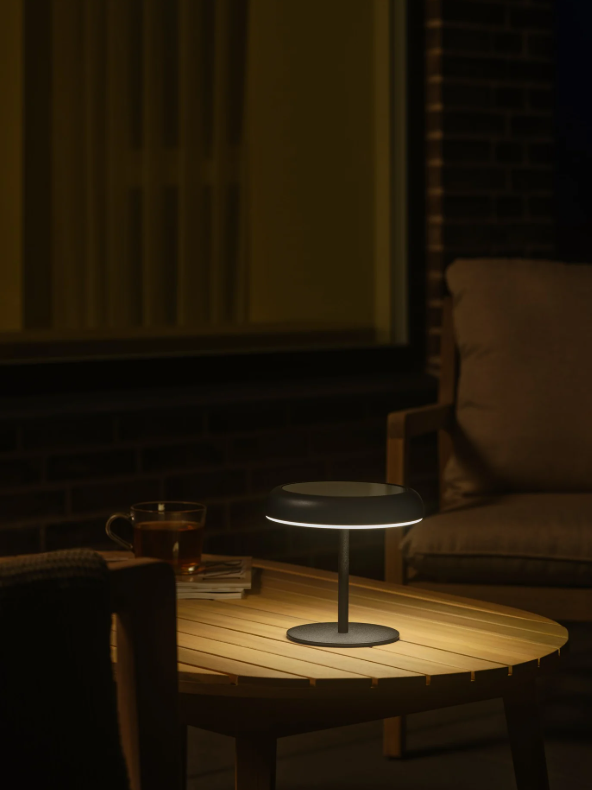 Elmer to innowacyjna, bezprzewodowa lampa stołowa, która oferuje pełną swobodę oświetlenia w niemal każdym wybranym miejscu. Zaprojektowana z myślą o użytkowaniu zarówno we wnętrzach, jak i na zewnątrz (klasa szczelności IP44), idealnie sprawdzi się na tarasie, balkonie, w ogrodzie czy na stoliku nocnym. Model ten łączy w sobie ekologiczne rozwiązania z nowoczesnym designem – w ciągu dnia ładuje się automatycznie dzięki wbudowanemu panelowi solarnemu, a w razie potrzeby może być również szybko naładowany za pomocą dołączonego kabla USB-C.