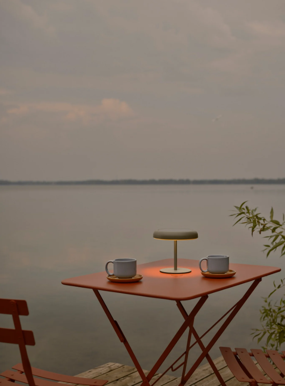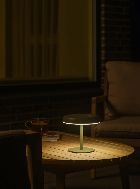 Charakterystyczny, minimalistyczny klosz zapewnia przyjemne, miękkie światło skierowane w dół, które buduje relaksującą atmosferę, nie oślepiając przy tym użytkowników. Lampa wyposażona jest w energooszczędny moduł LED emitujący ciepłą barwę światła (3000K) oraz innowacyjny 3-stopniowy system ściemniania Moodmaker™. Pozwala on na łatwe dopasowanie jasności do sytuacji – wydajny akumulator gwarantuje nieprzerwaną pracę od 6 do nawet 26 godzin (w zależności od wybranego poziomu jasności).