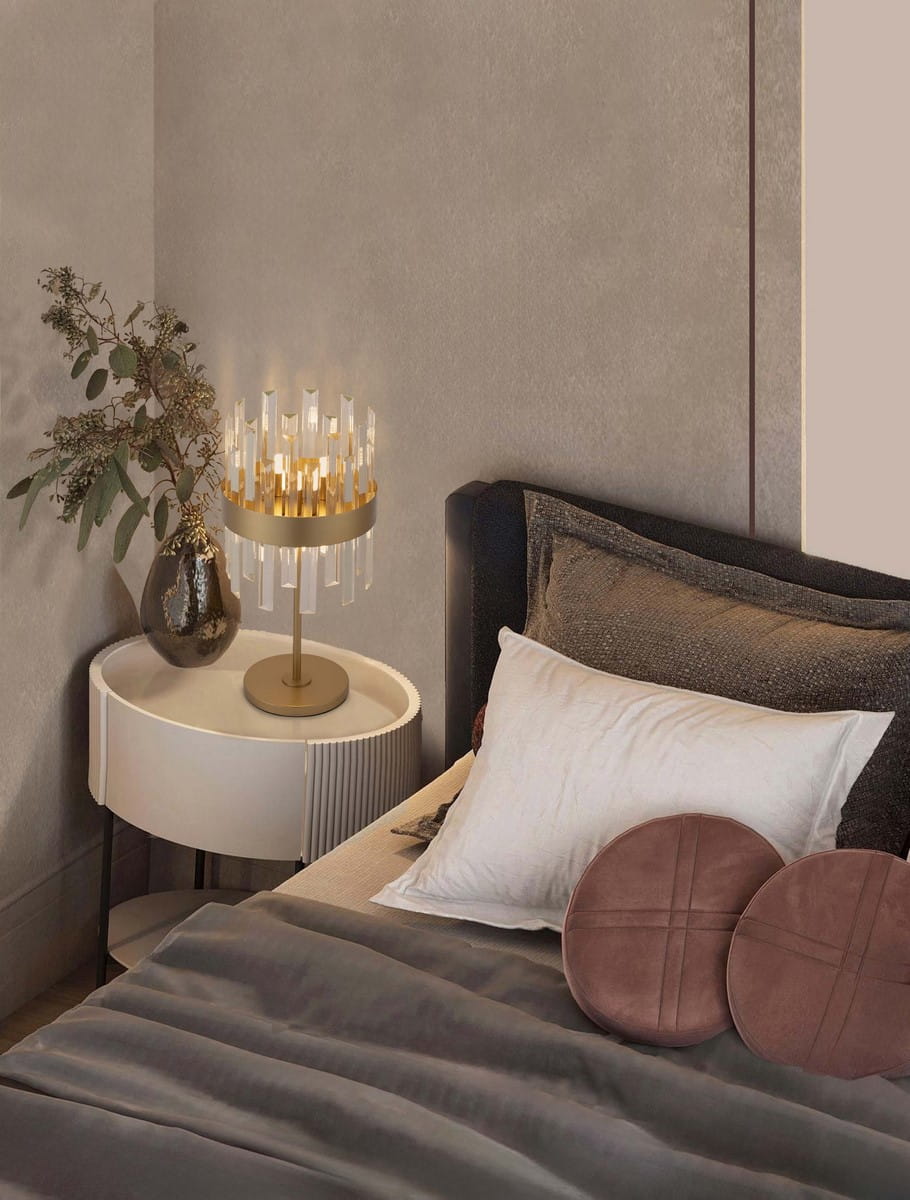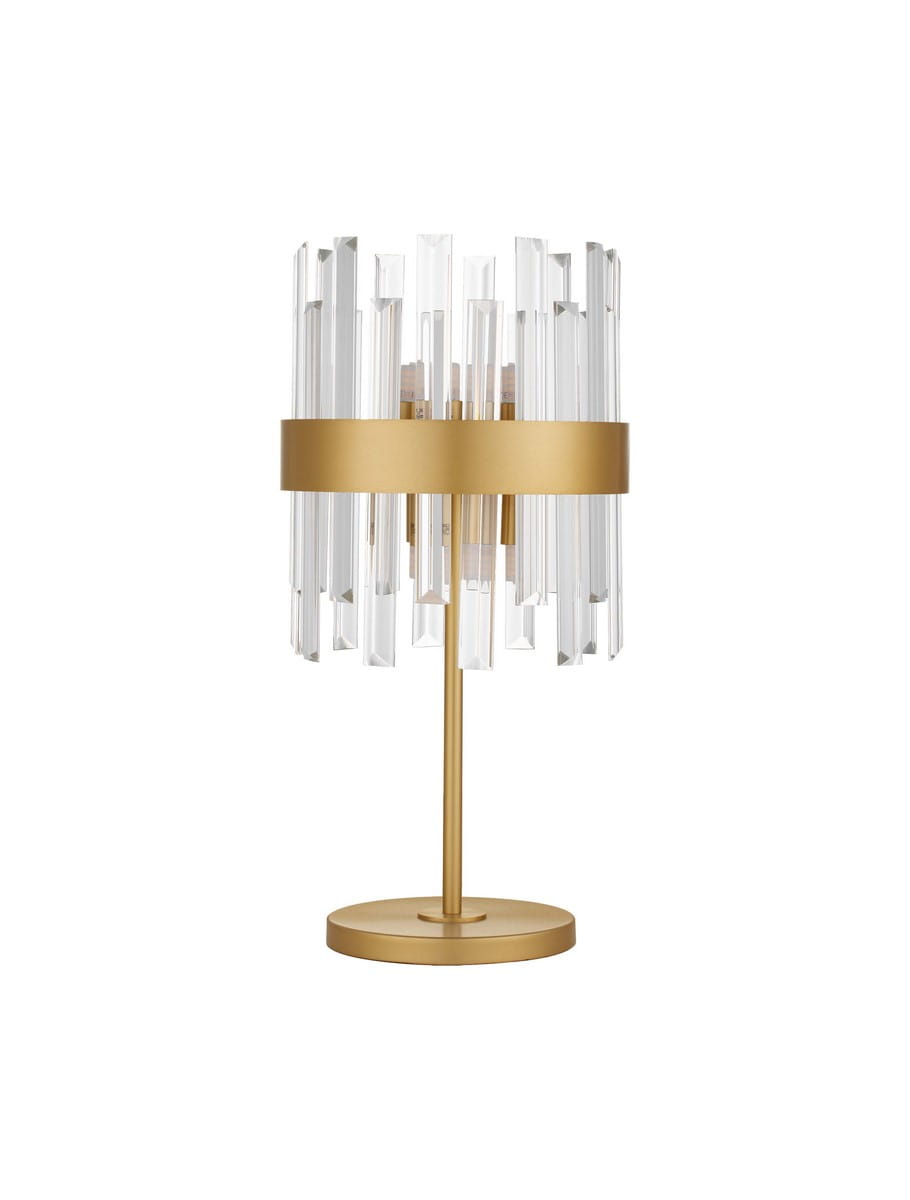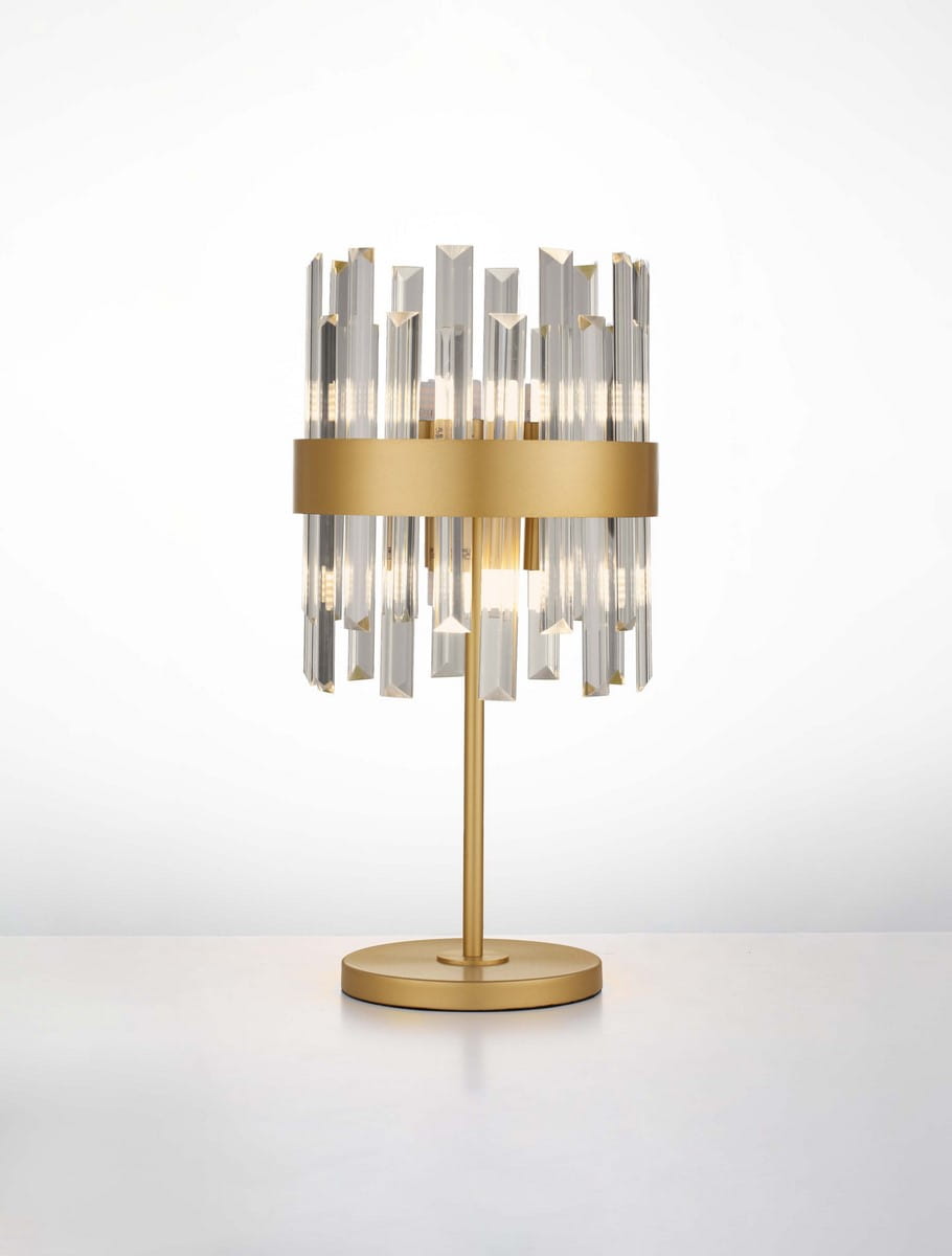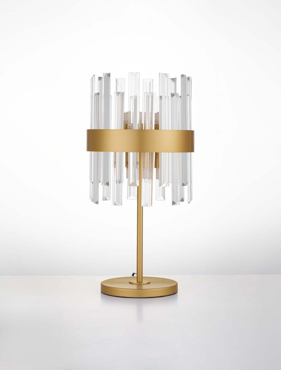 Lampa stołowa Cholula to prawdziwe dzieło nowoczesnego designu, które łączy w sobie trwałość metalu i subtelny blask kryształowych elementów. Wykończenie w kolorze złota wprowadza nutę luksusu, jednocześnie wpisując się w popularny styl glamour, uwielbiany w ekskluzywnych aranżacjach wnętrz.