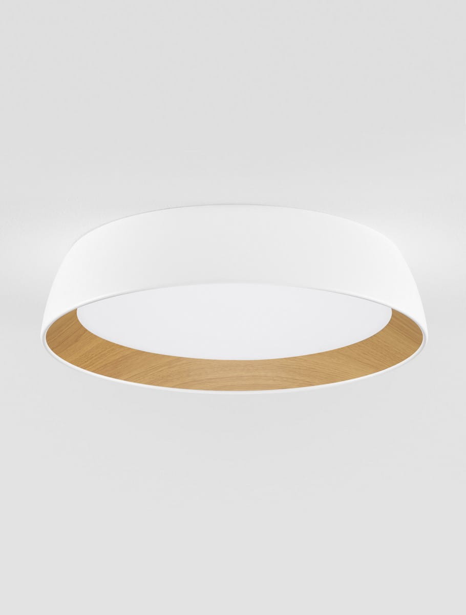 Wyjątkowym elementem Caracollo jest wewnętrzna część klosza, pokryta materiałem imitującym naturalne drewno, który ociepla całość i nadaje jej unikalnego charakteru. Dzięki temu lampa nie tylko pięknie oświetla przestrzeń, ale również tworzy przytulną atmosferę, idealną zarówno do wnętrz nowoczesnych, jak i skandynawskich czy loftowych.