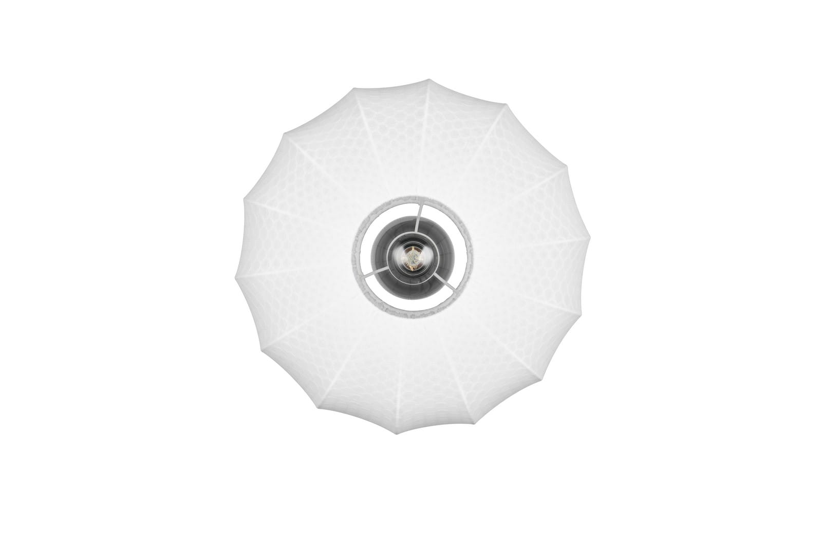 Metalowe elementy konstrukcyjne nadają lampie stabilność i elegancję, a czarna podsufitka doskonale kontrastuje z jasnym kloszem, podkreślając współczesny charakter projektu. Madelina to lampa, która nie tylko oświetla, ale również zdobi — doskonale odnajduje się we wnętrzach urządzonych w stylu japandi, boho, modern organic czy soft loft.