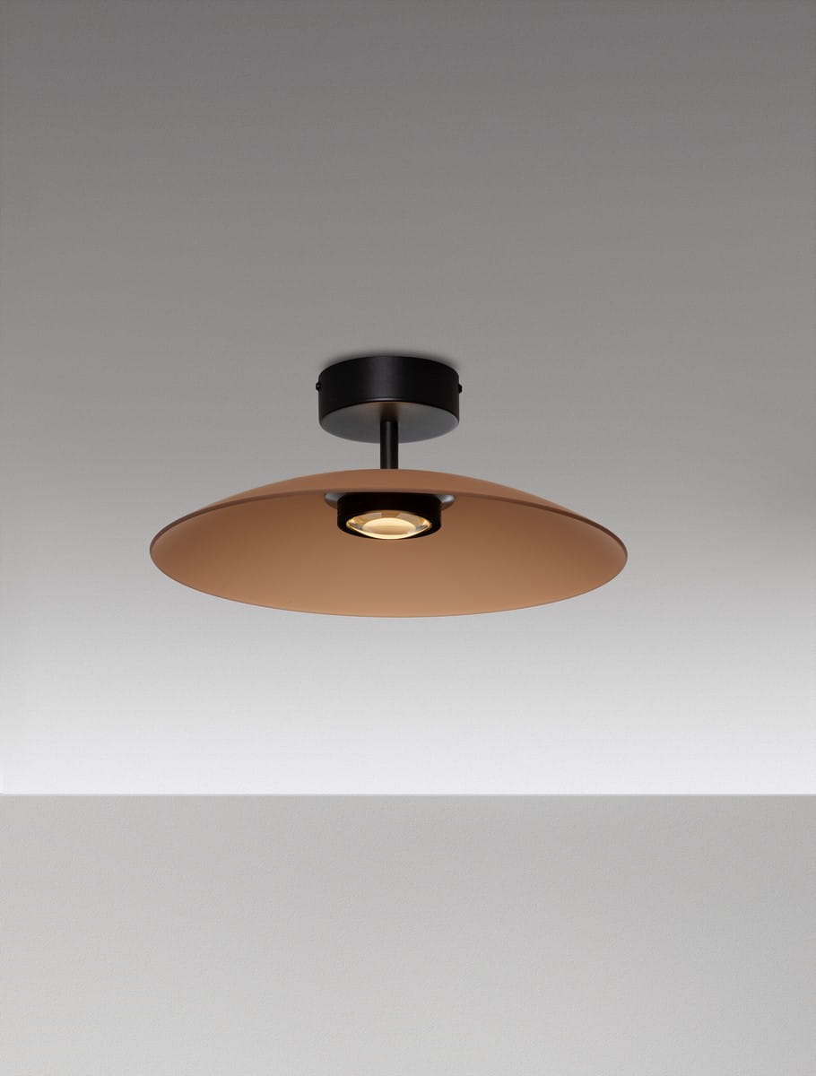 Główną cechą wyróżniającą tę serię jest klosz, wykonany ze szkła dostępnego w dwóch eleganckich wariantach kolorystycznych: dymionym oraz brązowym. Transparentne szkło o delikatnie zabarwionej powierzchni zapewnia miękkie, rozproszone światło, które tworzy w pomieszczeniu przytulną, a zarazem stylową atmosferę.