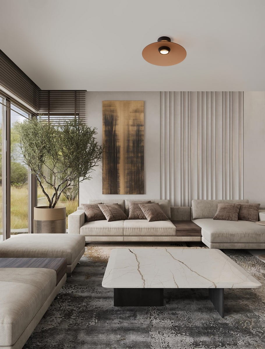 Seria lamp Peca obejmuje dwa modele: wiszącą oraz sufitową, co daje szerokie możliwości aranżacyjne. Lampa wisząca doskonale nadaje się do umieszczenia nad stołem jadalnym, wyspą kuchenną lub w salonie, gdzie stanie się centralnym punktem wnętrza. Z kolei lampa sufitowa to idealne rozwiązanie do pomieszczeń, gdzie potrzebne jest niskoprofilowe, eleganckie oświetlenie – np. w sypialni, przedpokoju czy nowoczesnej kuchni.