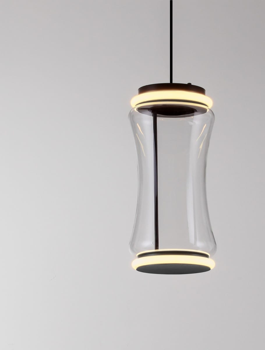 Charakterystyczny design lampy podkreśla jej unikalny, futurystyczny wygląd. Przezroczyste szklane elementy połączone z metalowymi detalami nadają jej lekkości, jednocześnie wprowadzając do przestrzeni odrobinę luksusu. Oświetlenie tworzy niepowtarzalną grę światła i cienia, co czyni lampę idealnym wyborem nad stół jadalny lub wyspę kuchenną.