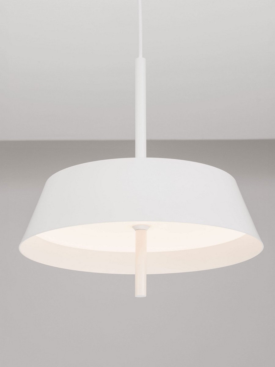 Lampa wisząca Aguila w wersji o szerokości 35 cm to esencja nowoczesnego minimalizmu, która nadaje wnętrzu lekkości i świeżości. Wykończona w eleganckiej, matowej bieli, oprawa ta idealnie komponuje się z jasnymi aranżacjami, stanowiąc stylowy punkt centralny pomieszczenia. Smukła, geometryczna forma klosza wykonana z aluminium i stali podkreśla designerski charakter oświetlenia od Nova Luce.