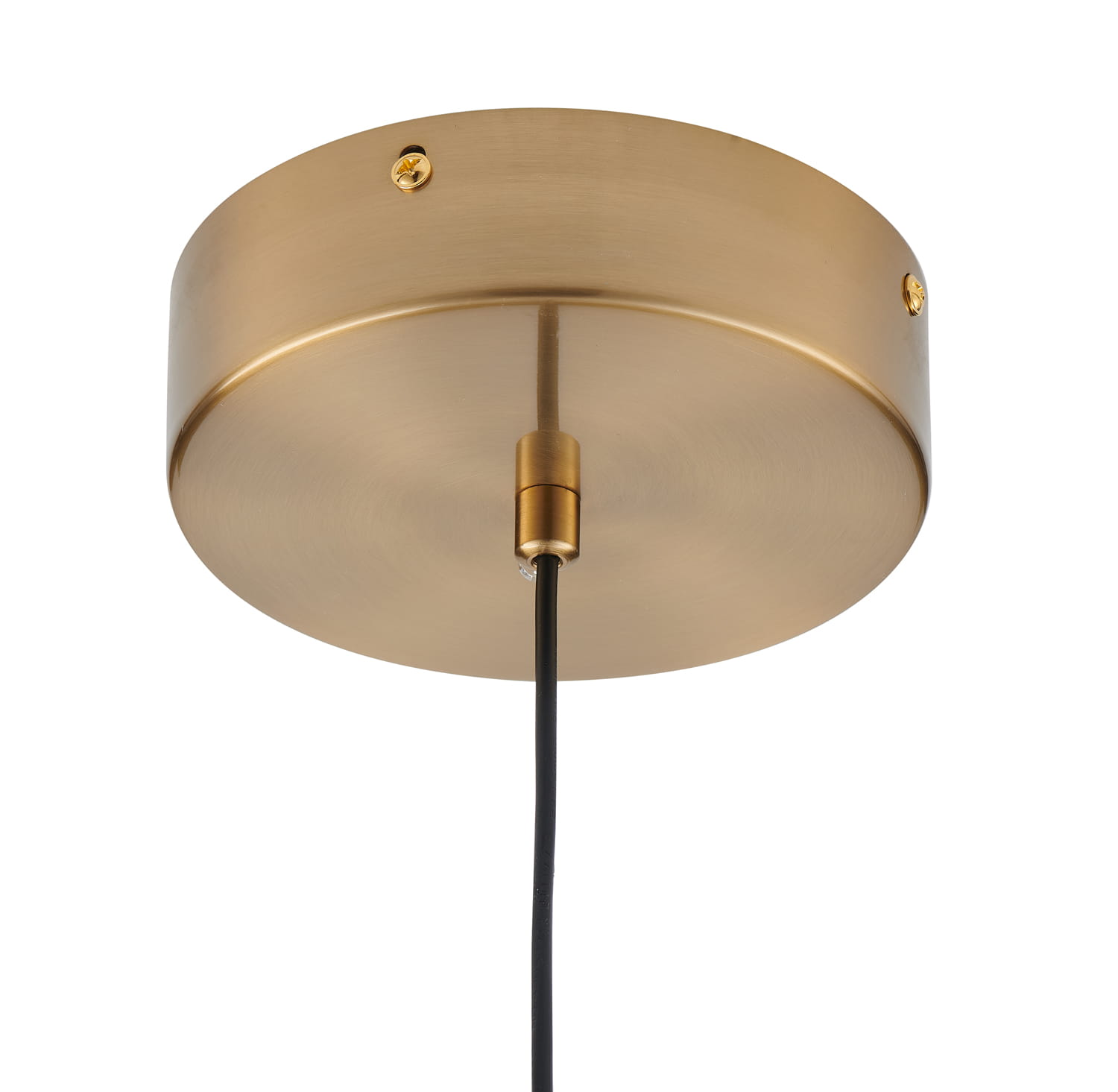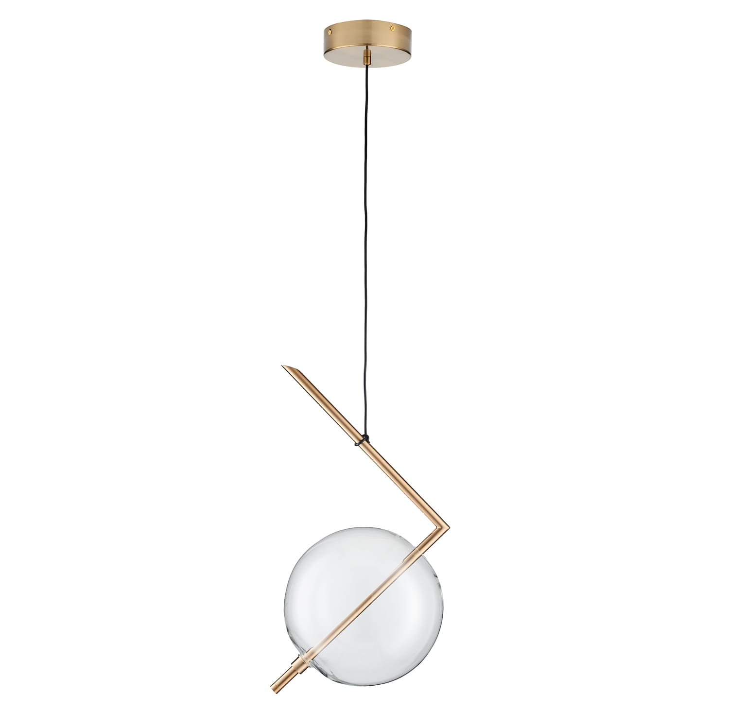 Lampa składa się z trójkątnej konstrukcji wykonanej z metalu, zwieńczonej szklanym kloszem. Całość zawieszona jest na czarnym kablu wykonanym z tworzywa PVC, który jest finezyjny opleciony wokół metalowej rurki. Wysoka jakość materiałów oraz uniwersalna, złota kolorystyka nadadzą wnętrzu eleganckiego stylu, tworząc wyjątkowy element dekoracyjny.