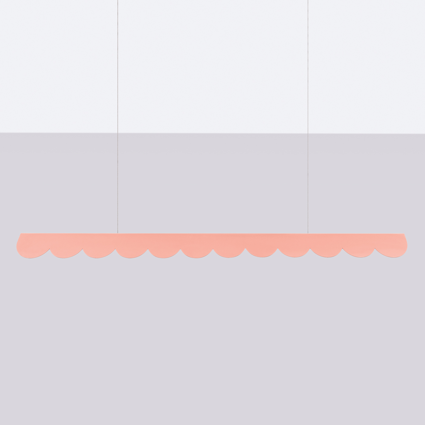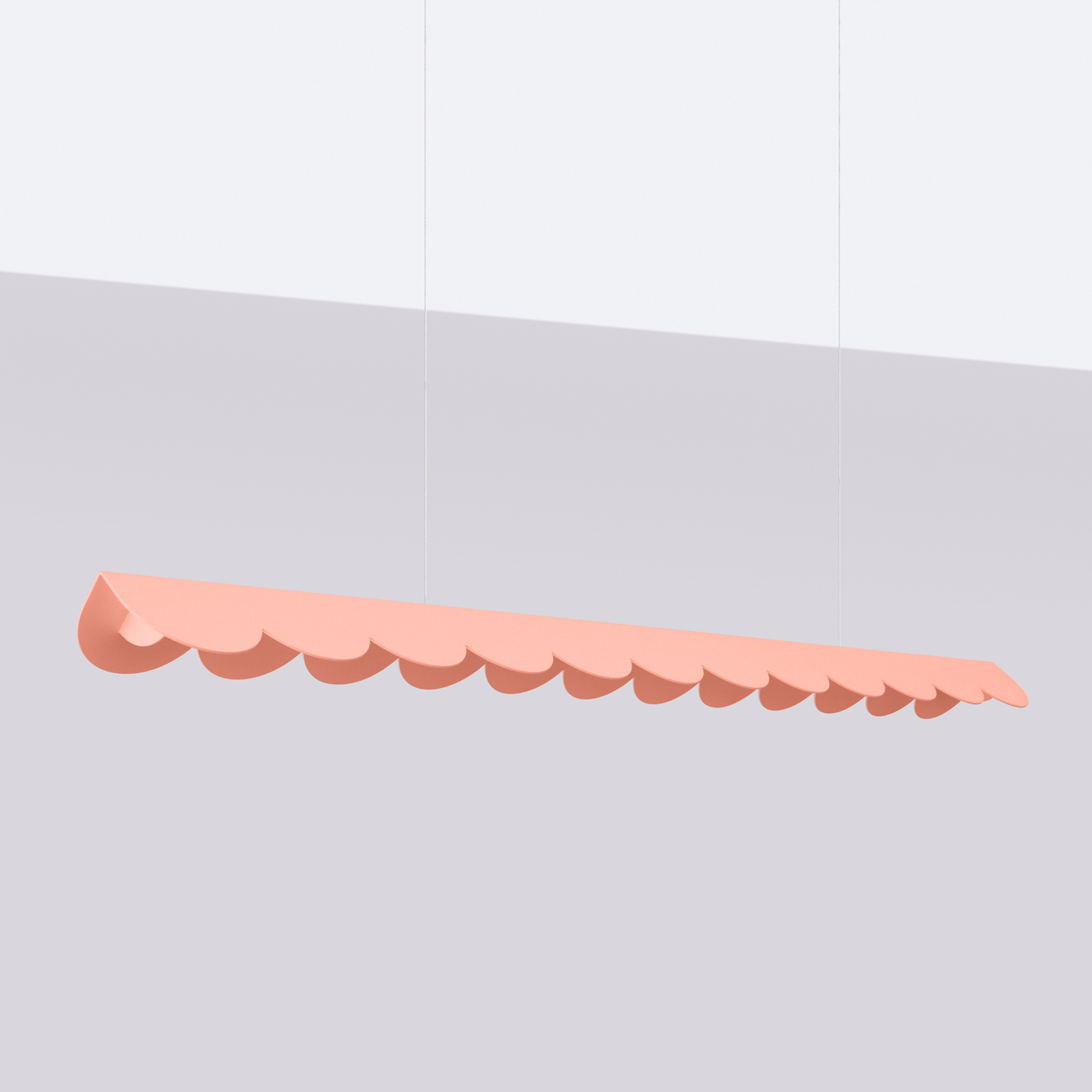 Jej unikalna forma inspirowana miękkimi liniami i rytmiczną geometrią przyciąga wzrok, a jednocześnie pozostaje subtelna i elegancka. Wykonana z malowanego proszkowo aluminium i wyposażona we wbudowany moduł LED o wysokim współczynniku oddawania barw (CRI>90), zapewnia równomierne oświetlenie bez efektu olśnienia, co czyni ją idealnym rozwiązaniem nad stołem, wyspą kuchenną, w strefie relaksu lub w przestrzeniach do pracy.