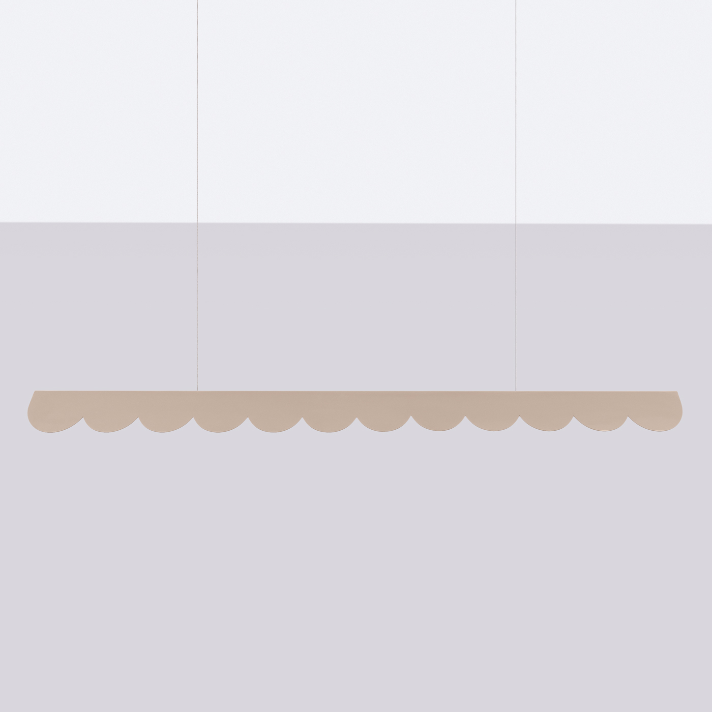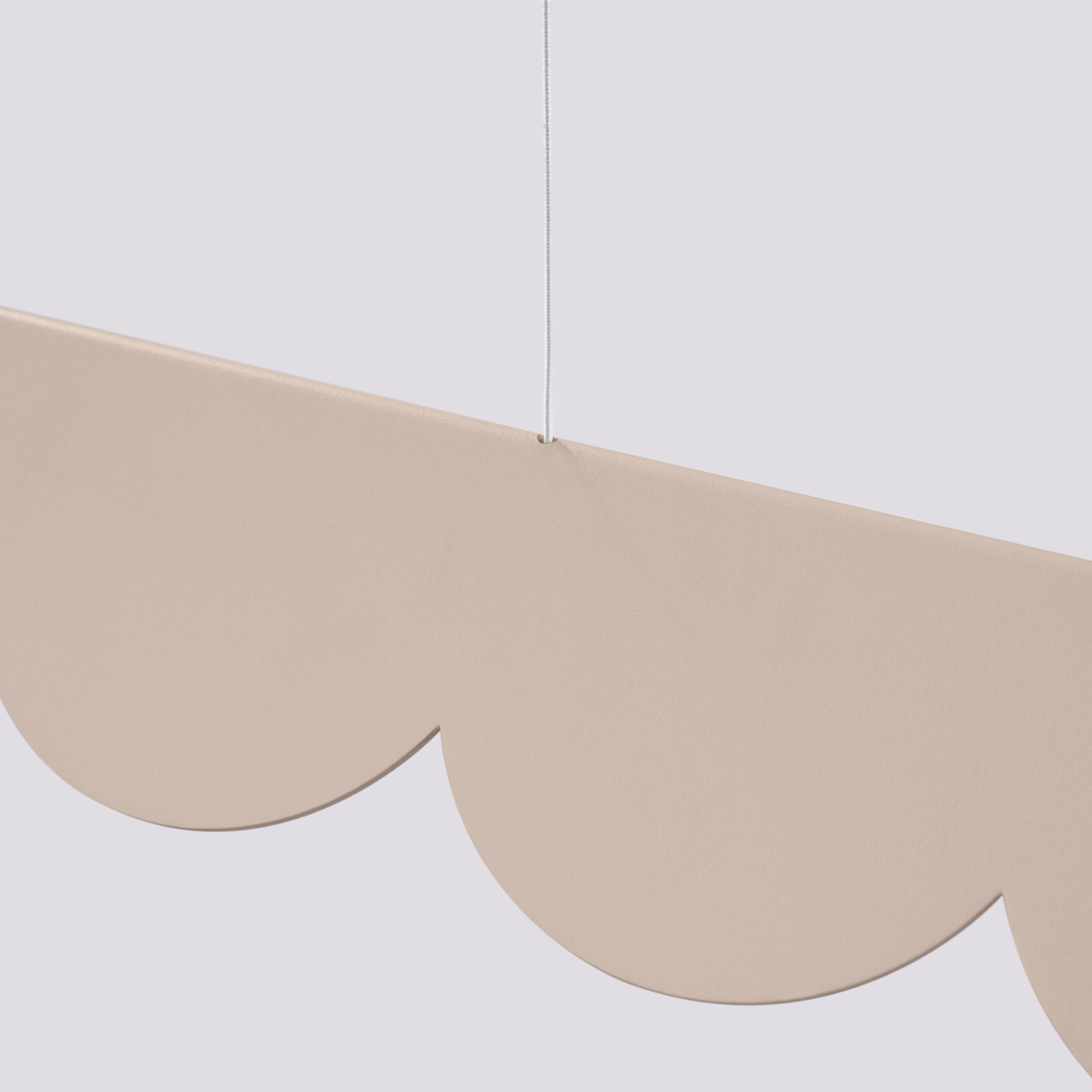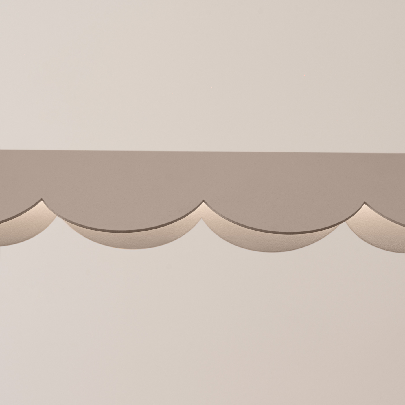 Jej unikalna forma inspirowana miękkimi liniami i rytmiczną geometrią przyciąga wzrok, a jednocześnie pozostaje subtelna i elegancka. Wykonana z malowanego proszkowo aluminium i wyposażona we wbudowany moduł LED o wysokim współczynniku oddawania barw (CRI>90), zapewnia równomierne oświetlenie bez efektu olśnienia, co czyni ją idealnym rozwiązaniem nad stołem, wyspą kuchenną, w strefie relaksu lub w przestrzeniach do pracy.