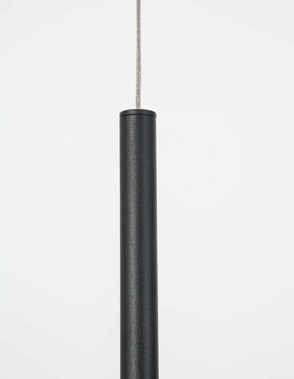Lampa wisząca Buga wykonana została z wysokiej jakości aluminium o czarnym wykończeniu. W podłużnym kloszu znajduje się wbudowane źródło światła LED.