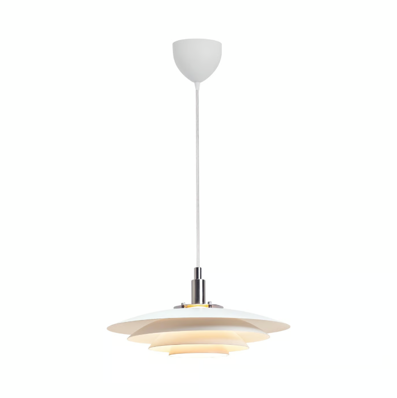 Lampa wisząca Bretagne 38, zaprojektowana przez uznanego twórcę Kåre Bækgårda, to kwintesencja ponadczasowego, skandynawskiego wzornictwa. Jej sylwetka opiera się na innowacyjnej, wielowarstwowej konstrukcji kloszy. Dzięki takiemu układowi oprawa emituje niezwykle miękkie i rozproszone światło, które jest całkowicie wolne od nieprzyjemnego efektu olśnienia. Wnętrze kloszy zostało zachowane w bieli, co zapewnia optymalne odbicie światła i równomierne doświetlenie przestrzeni.