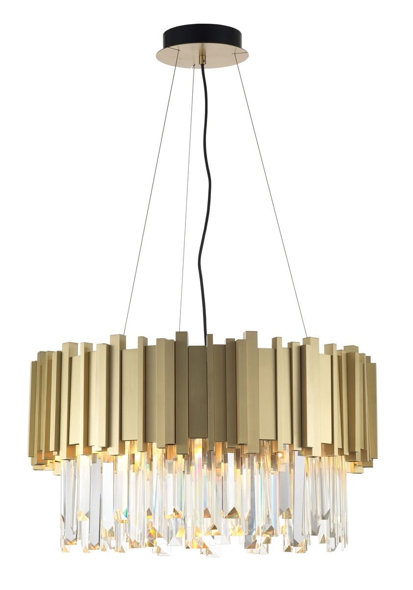 Lampa wisząca Caralca to piękne połączenie błyszczących kryształków i złota w stylu glamour. Jej design inspirowany jest stylem art déco, który łączy nowoczesne formy z klasycznym pięknem. Lampa ta stanie się centralnym punktem każdego pomieszczenia, przyciągając wzrok i tworząc wyjątkową atmosferę.