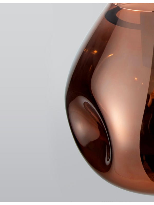 Lampa wisząca Carmen to wyjątkowe połączenie szklanej formy i metalowych detali, które razem tworzą niezwykle efektowną, dekoracyjną całość. Jej organiczny kształt i lśniące, przydymione wykończenie o miedzianym odcieniu natychmiast przyciągają wzrok, nadając wnętrzu nowoczesnego charakteru.