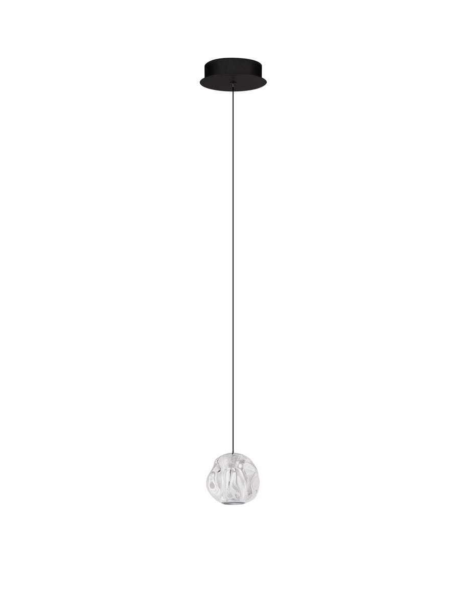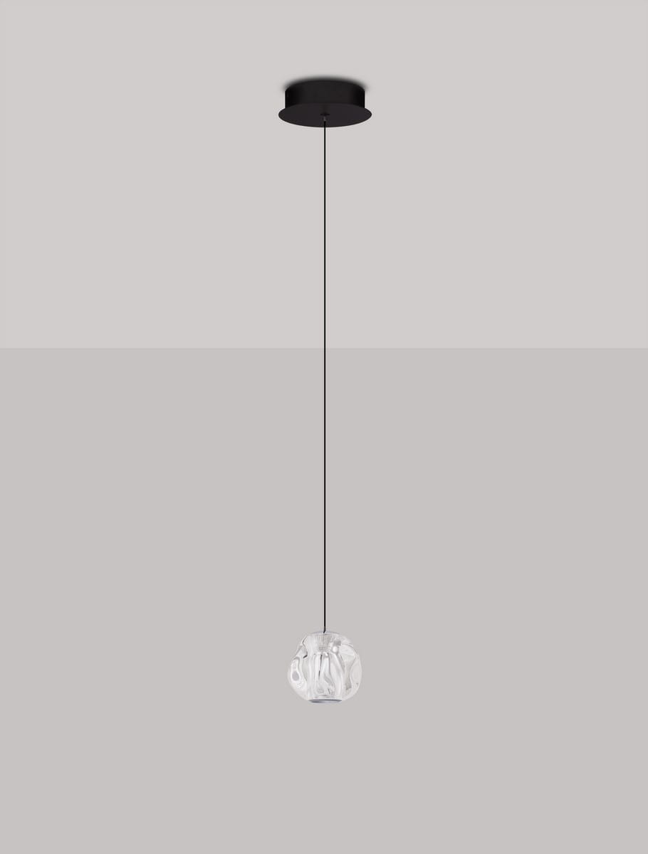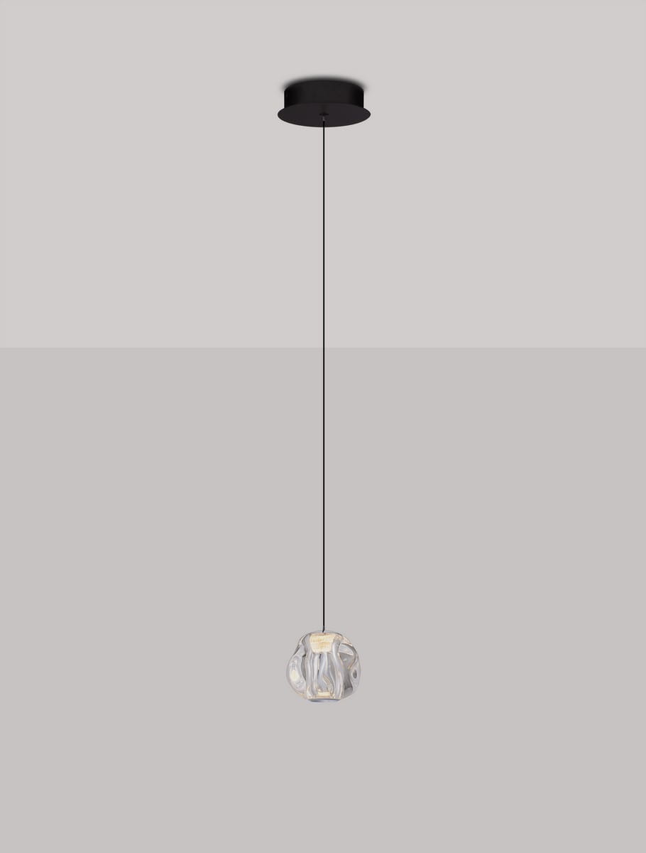 Lampa składa się z pojedynczego klosza wykonanego z transparentnego akrylu, swobodnie zwisającego z okrągłej podsufitki. Akrylowy klosz przypominaja organiczne, nieregularne formy, które swoim kształtem nawiązują do płynnych ruchów szkła.