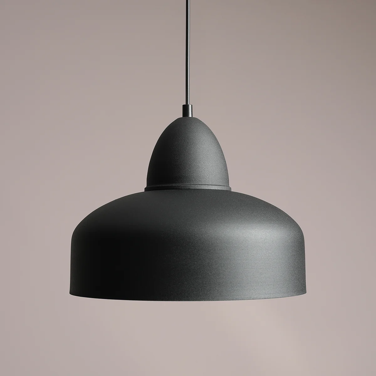 Nowoczesna lampa wisząca w czarnym kolorze, który podkreśla jej industrialny charakter.