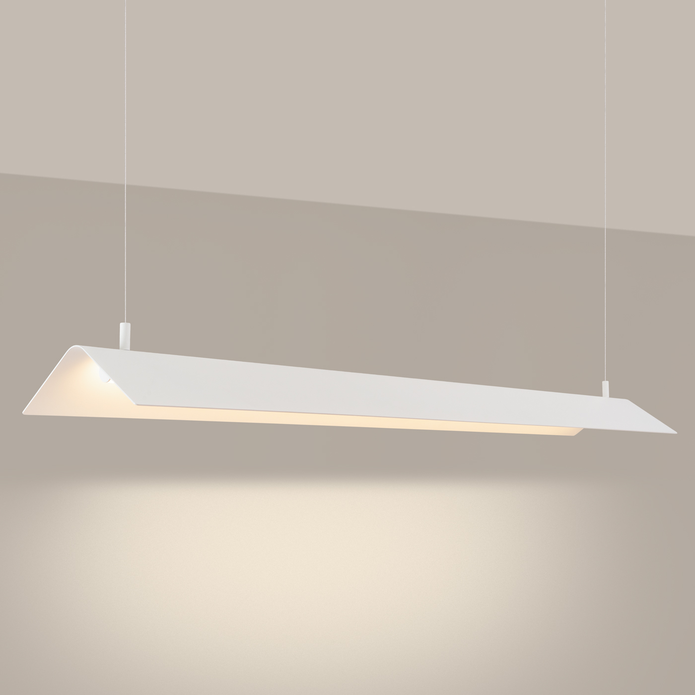 Dzięki możliwości wyboru temperatury barwowej – 3000K dla ciepłego światła lub 4000K dla neutralnego – ELVA pozwala dopasować oświetlenie do charakteru i funkcji przestrzeni. Lampa emituje równomierne, rozproszone światło skierowane w dół, co sprawia, że doskonale sprawdzi się nad wyspą kuchenną, stołem jadalnianym czy w przestrzeniach biurowych.