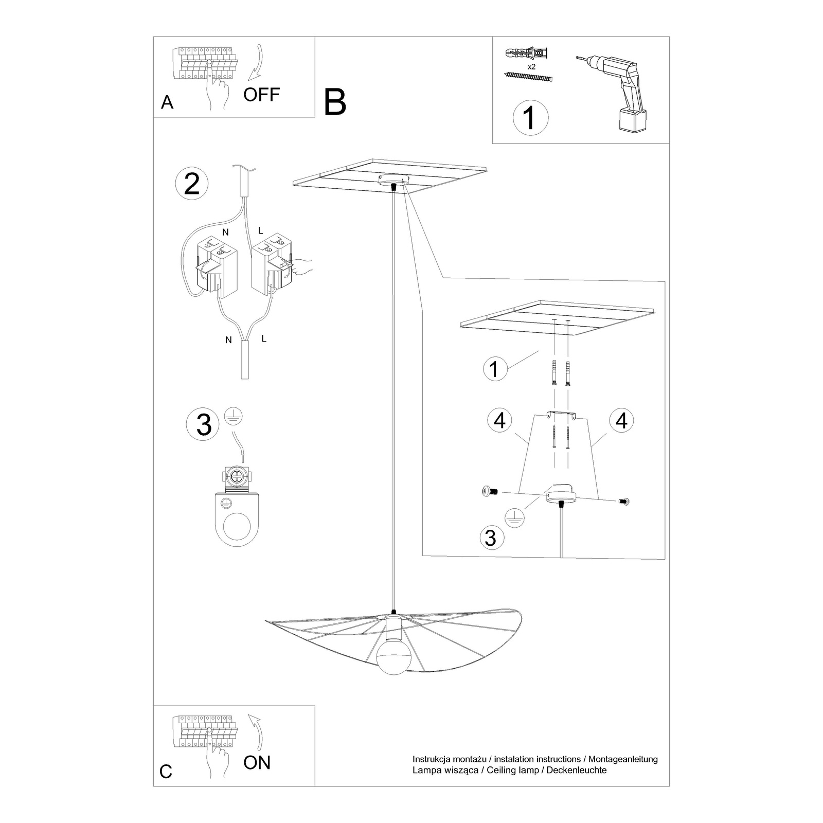 Źródło światła nie jest dołączone w zestawie, należy dobrać je samodzielnie.
