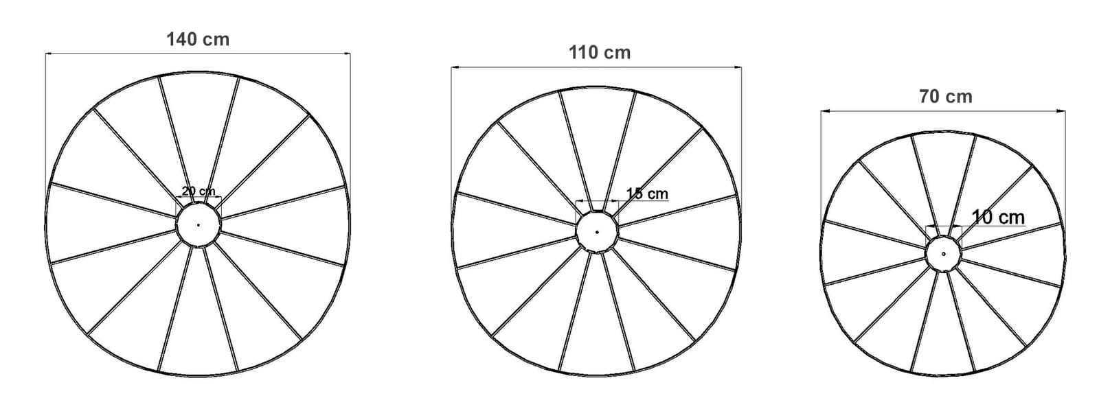Średnica: 70/110/140 cm