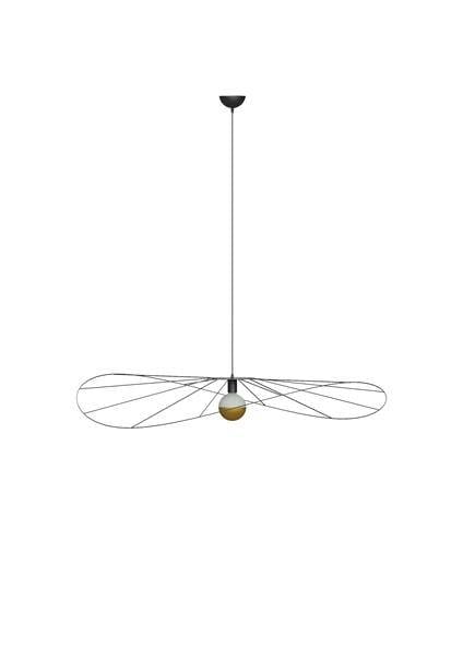 Wykonana ze stali w czarnym kolorze, nowoczesna lampa wisząca zachwyca swoim asymetrycznym kształtem i intrygującą formą.
