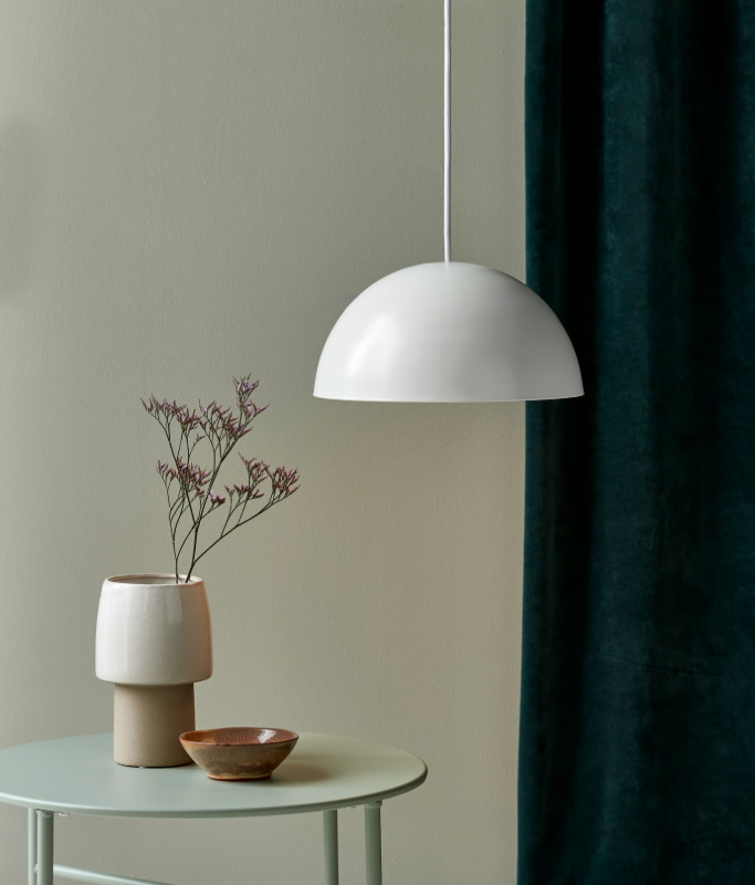 Wykończenie w klasycznej, matowej bieli (RAL 9016) czyni z modelu Ellen 30 niezwykle wdzięczny element aranżacyjny, który optycznie powiększa i rozświetla pomieszczenie. Lampa ta jest rewelacyjnym wyborem jako oświetlenie nad stołem w jadalni, wyspą kuchenną czy w centralnym punkcie salonu. Wysoką jakość wykonania podkreśla biały przewód w tekstylnym oplocie o długości 200 cm, a możliwość ściemniania pozwala na swobodne kreowanie nastroju – od jasnego światła do pracy, po klimatyczny półmrok.