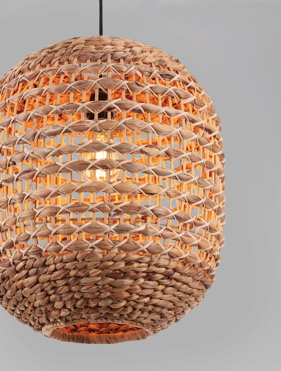 Lampy wiszące Guardia to esencja naturalnego piękna i swobodnego stylu boho, które wprowadzają do wnętrza ciepło i przytulność. Wykonane ręcznie z plecionki z hiacyntu wodnego, zachwycają unikalną teksturą i organiczną formą. Ten ekologiczny materiał, znany ze swojej trwałości i elastyczności, nadaje lampom lekkości oraz naturalnego uroku.
